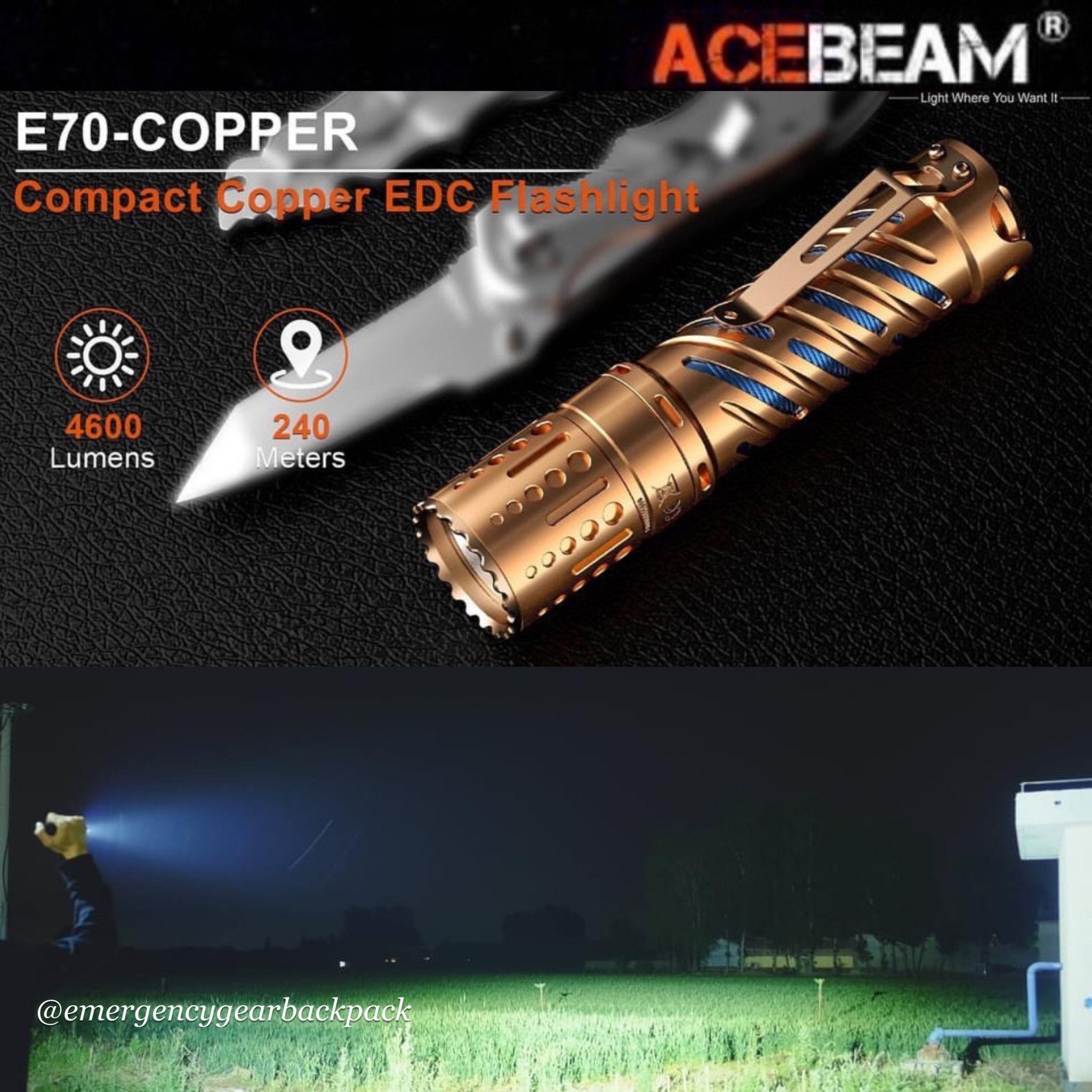 ACEBEAM E70-CU ไฟฉาย 21700 ขนาดคอมแพค ใช้หลอด LED CREE® XHP70.2 4600LMS 14400CD ให้พลังแสงที่สว่างมาก ลำแสงเข้ม แสงพุ่งกว้าง ครอบคลุมพื้นที่ 240 เมตร