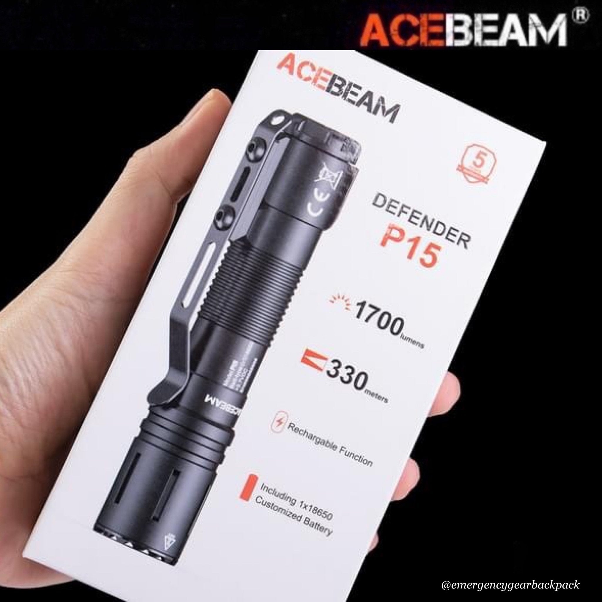 ACEBEAM P15 Defender ไฟฉายขนาดคอมแพคที่ผสานประสิทธิภาพระดับแทคติคอลเข้ากับการใช้งานแบบ EDC (Every Day Carry) ได้อย่างลงตัว มาพร้อมหลอด Luminus SFT-40 HI LED ให้ความสว่างสูงสุด 1700 ลูเมนส์ ความเข้มแสง 27,225 แคนเดลา แสงพุ่งไกล 330 เมตร ให้ Hotspot ดวงกลมใหญ่และสปิลแสงกว้าง มองเห็นเป้าหมายได้ชัดเจนทุกระยะ