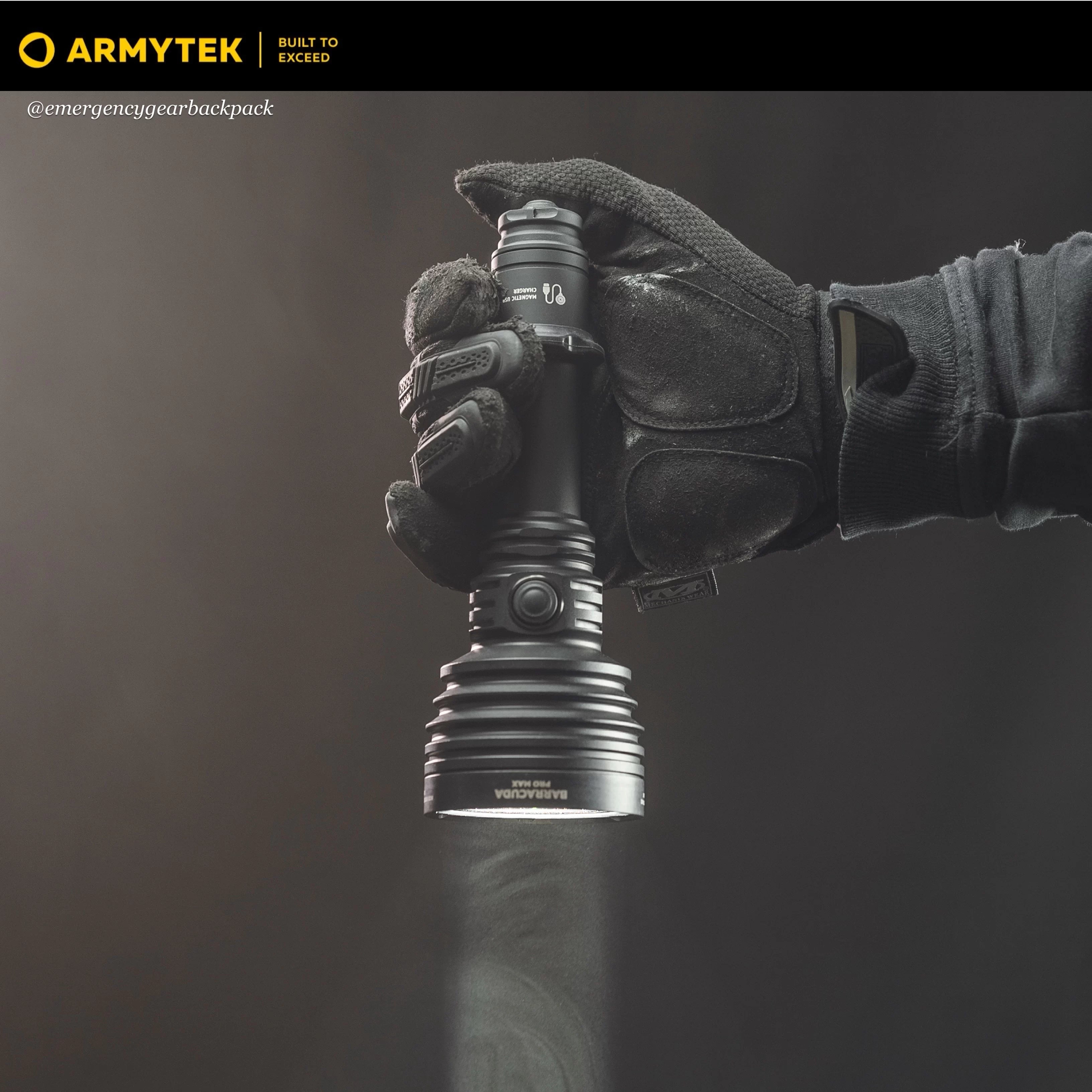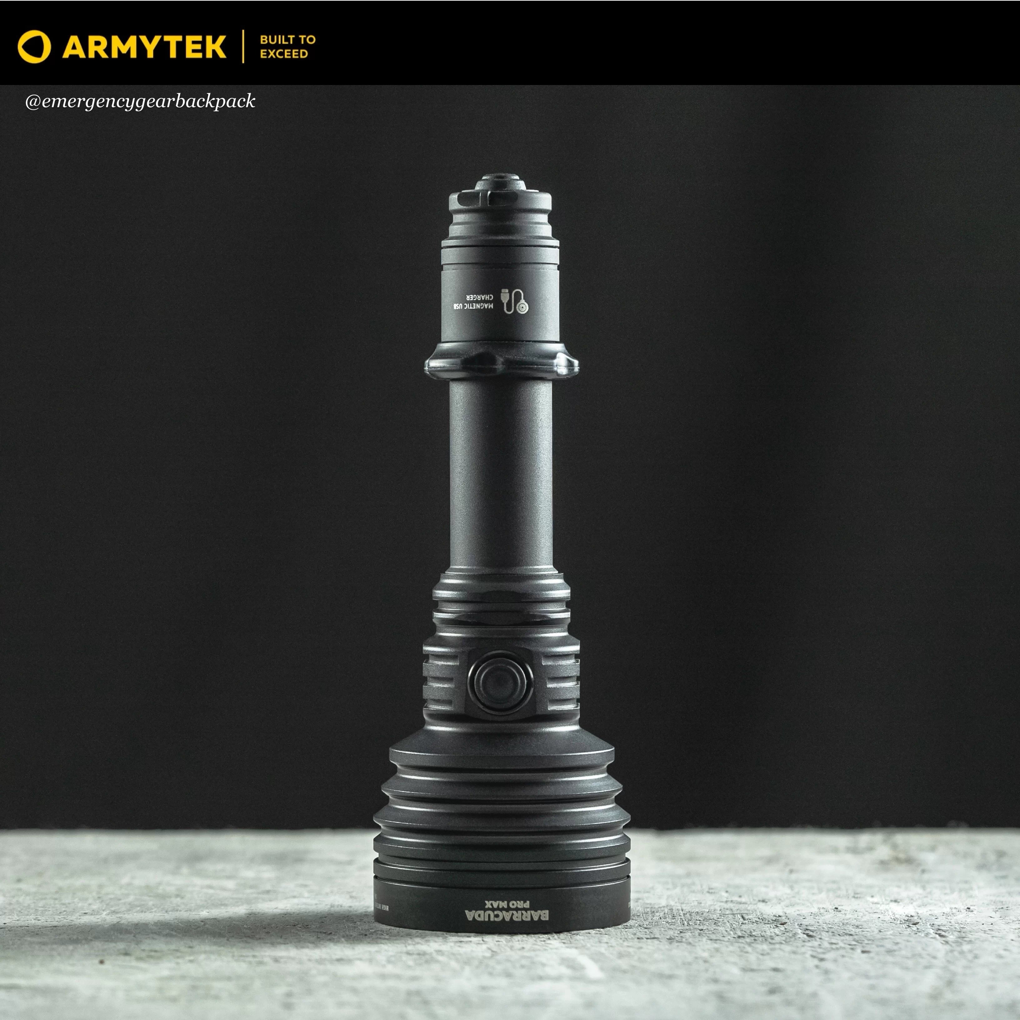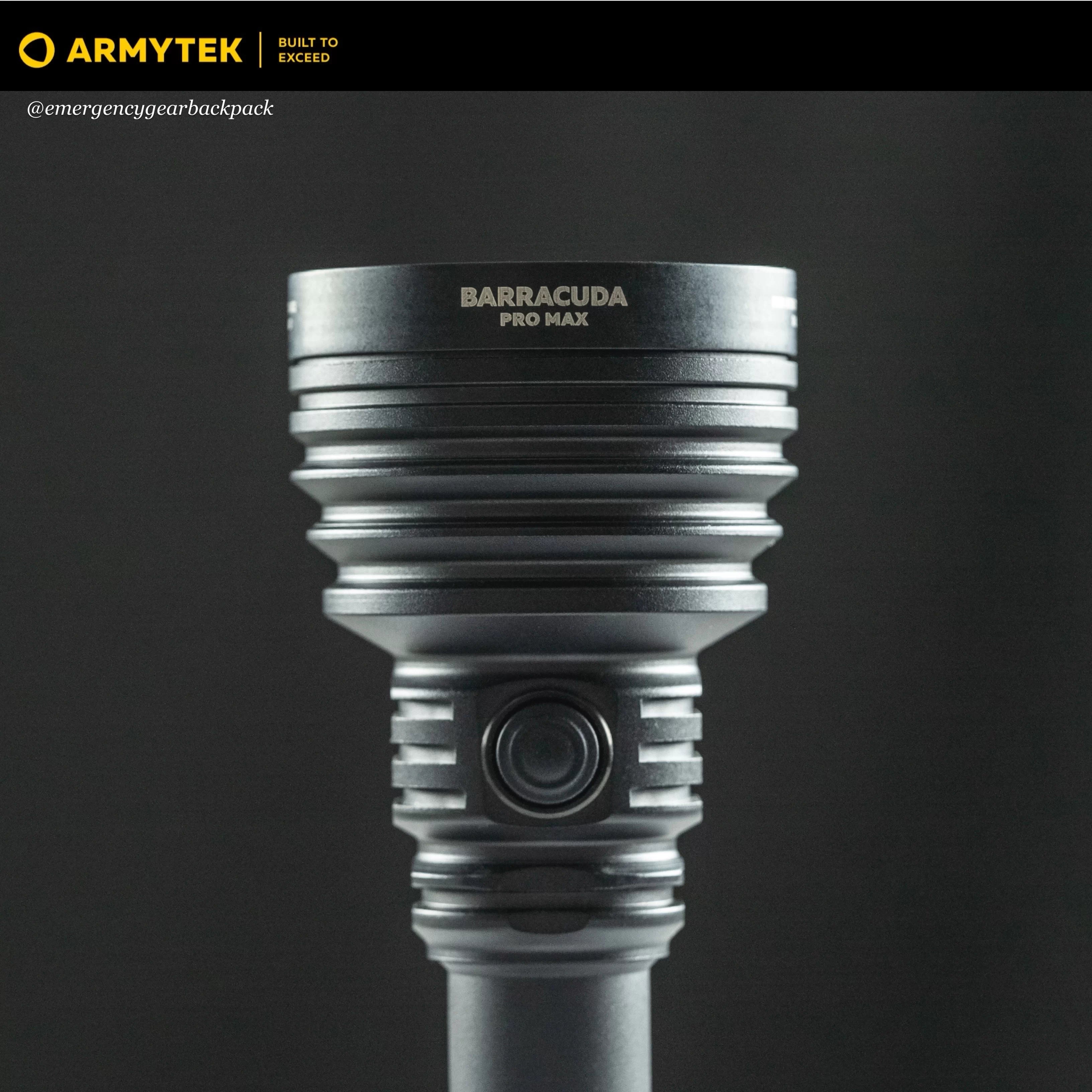 Armytek Barracuda Pro Max ไฟฉายประเภท Searchlight/Tactical Flashlight ในกลุ่ม Long-Range Searchlight ที่ออกแบบเพื่อการใช้งานค้นหาระยะไกลในภาคสนาม โดยให้ความสำคัญกับ ระยะพุ่งลำแสง ความคมของ Hotspot ความเสถียรของเอาต์พุต และความทนทานในการใช้งานต่อเนื่อง เหมาะสำหรับงานค้นหา กู้ภัย การเฝ้าระวังในพื้นที่เปิดและสถานการณ์ที่ต้องการการระบุตำแหน่งเป้าหมายอย่างแม่นยำในภาคสนาม