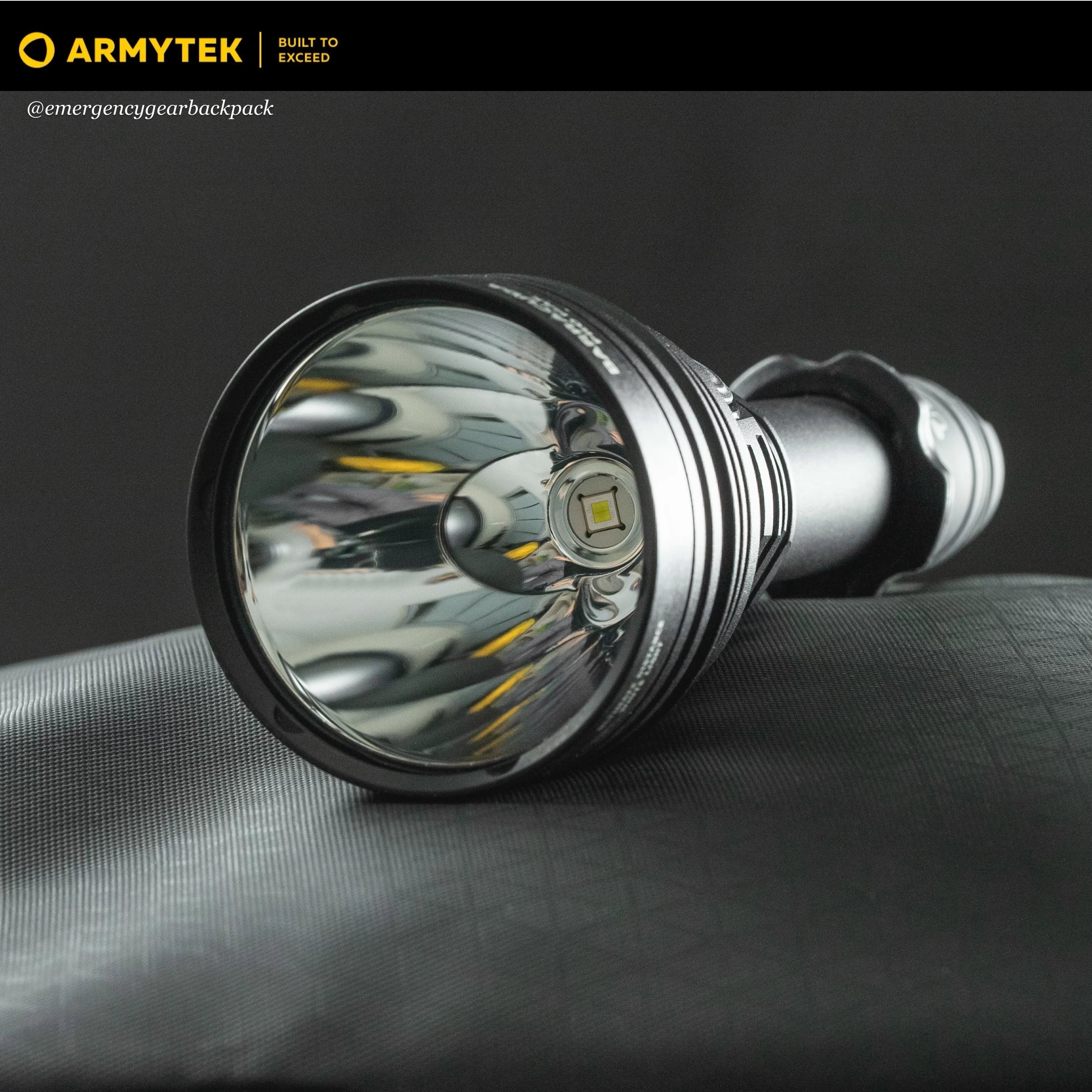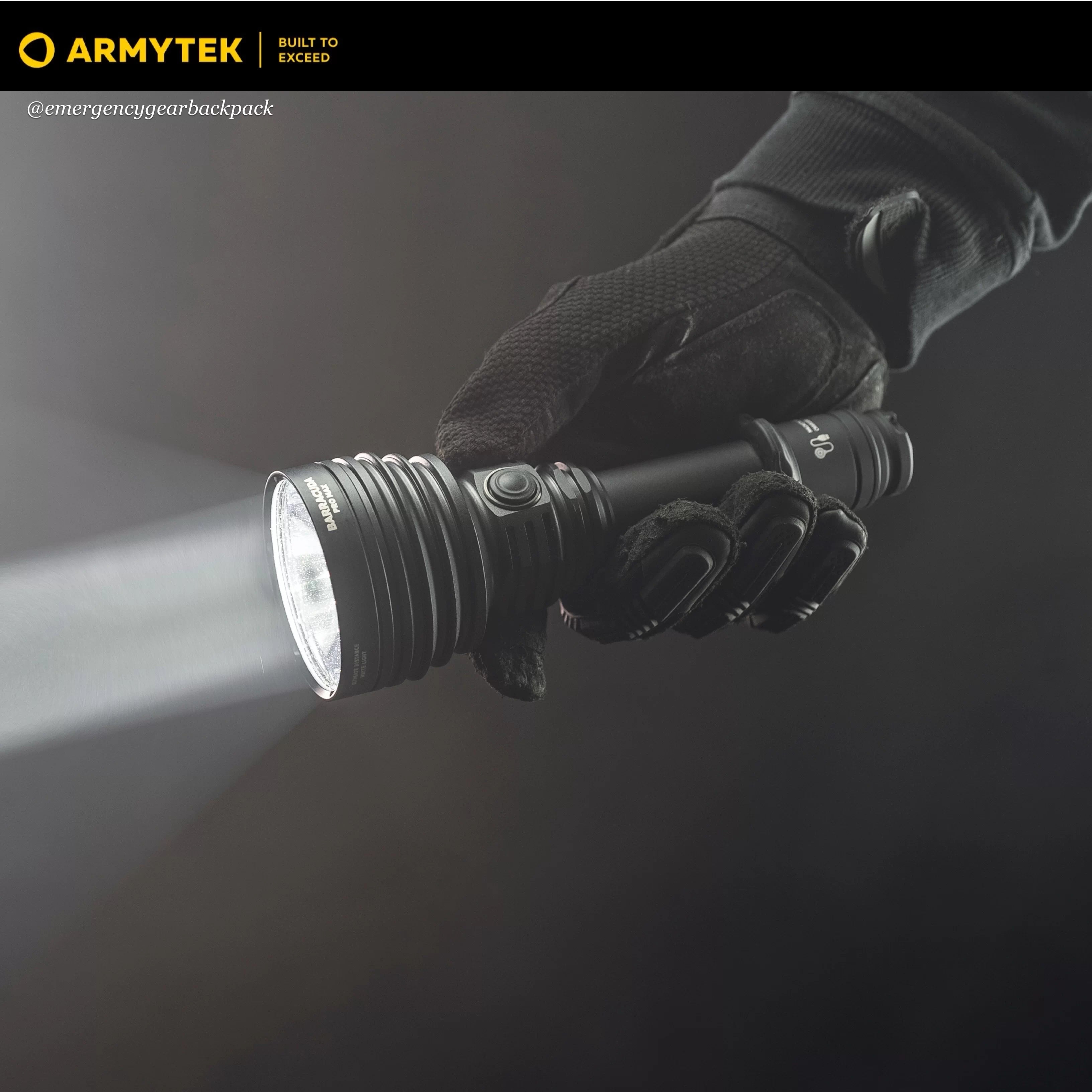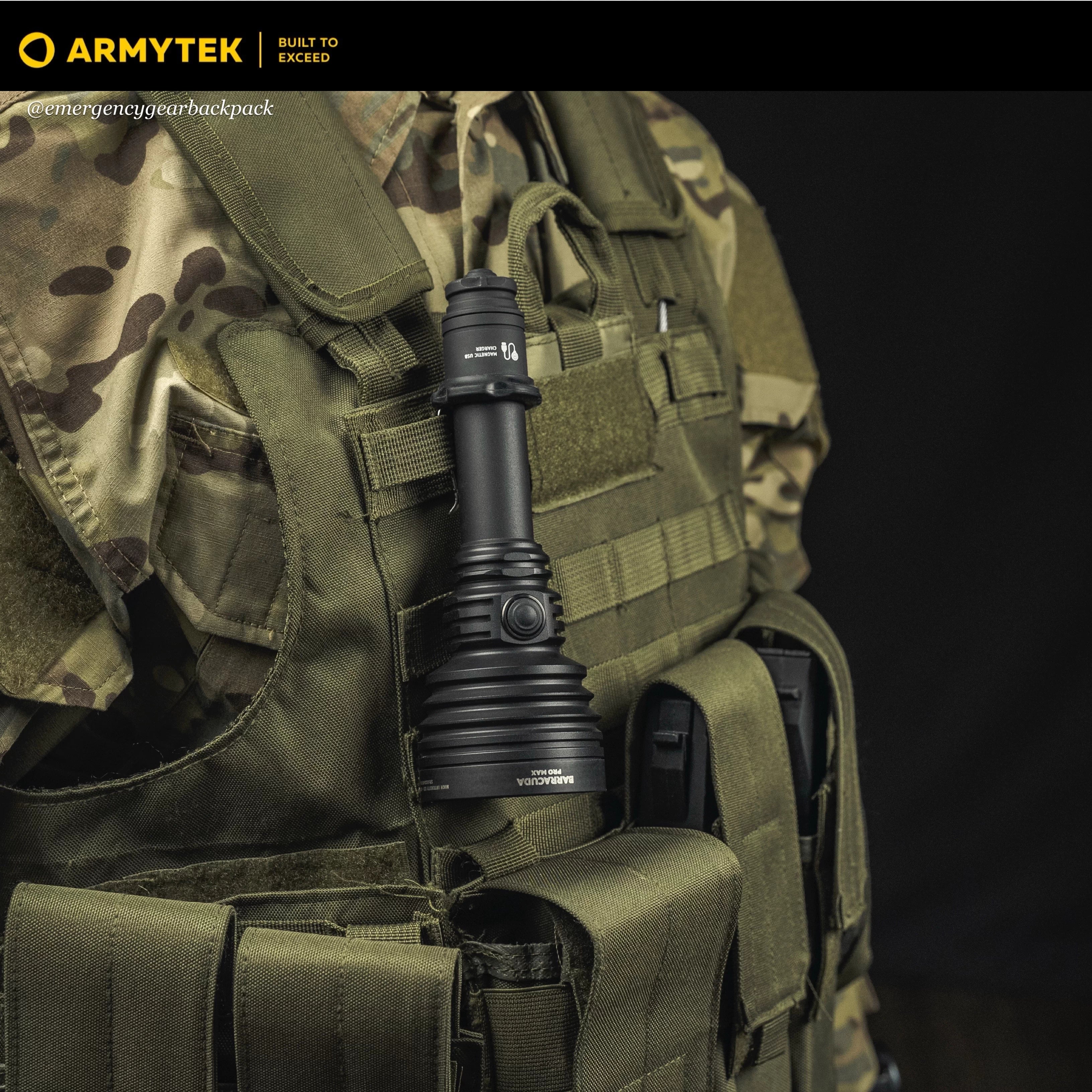 Armytek Barracuda Pro Max ไฟฉายประเภท Searchlight/Tactical Flashlight ในกลุ่ม Long-Range Searchlight ที่ออกแบบเพื่อการใช้งานค้นหาระยะไกลในภาคสนาม โดยให้ความสำคัญกับ ระยะพุ่งลำแสง ความคมของ Hotspot ความเสถียรของเอาต์พุต และความทนทานในการใช้งานต่อเนื่อง เหมาะสำหรับงานค้นหา กู้ภัย การเฝ้าระวังในพื้นที่เปิดและสถานการณ์ที่ต้องการการระบุตำแหน่งเป้าหมายอย่างแม่นยำในภาคสนาม