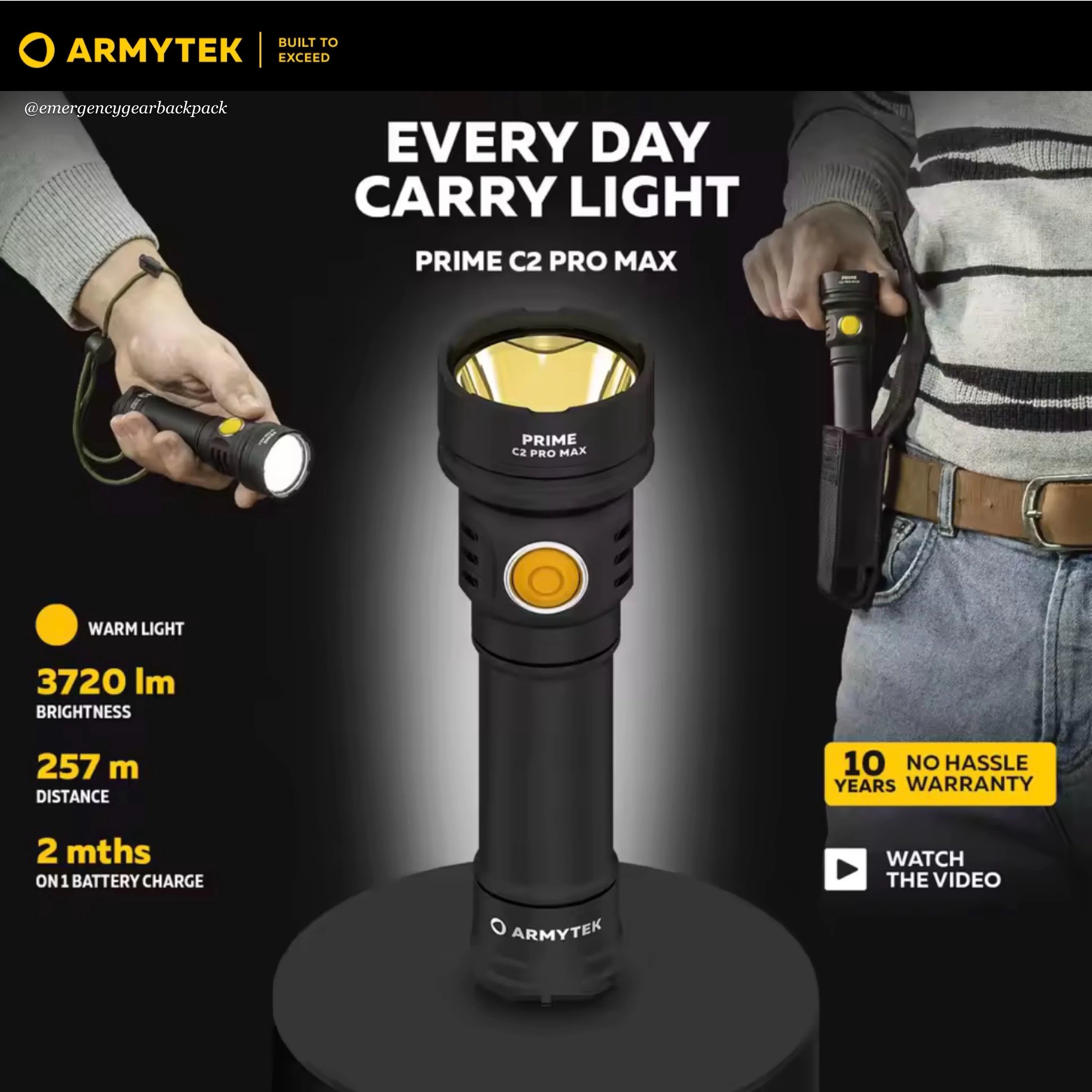 Armytek Prime C2 Pro Max จึงเป็นไฟฉายที่เน้น คุณภาพการมองเห็น ความสบายตา ความเชื่อถือได้ระยะยาว และความทนทานระดับมืออาชีพ เหมาะสำหรับการพกพาใช้งานประจำวัน งานภาคสนาม และการเป็นไฟฉายสำรองที่เชื่อถือได้ในทุกสถานการณ์
