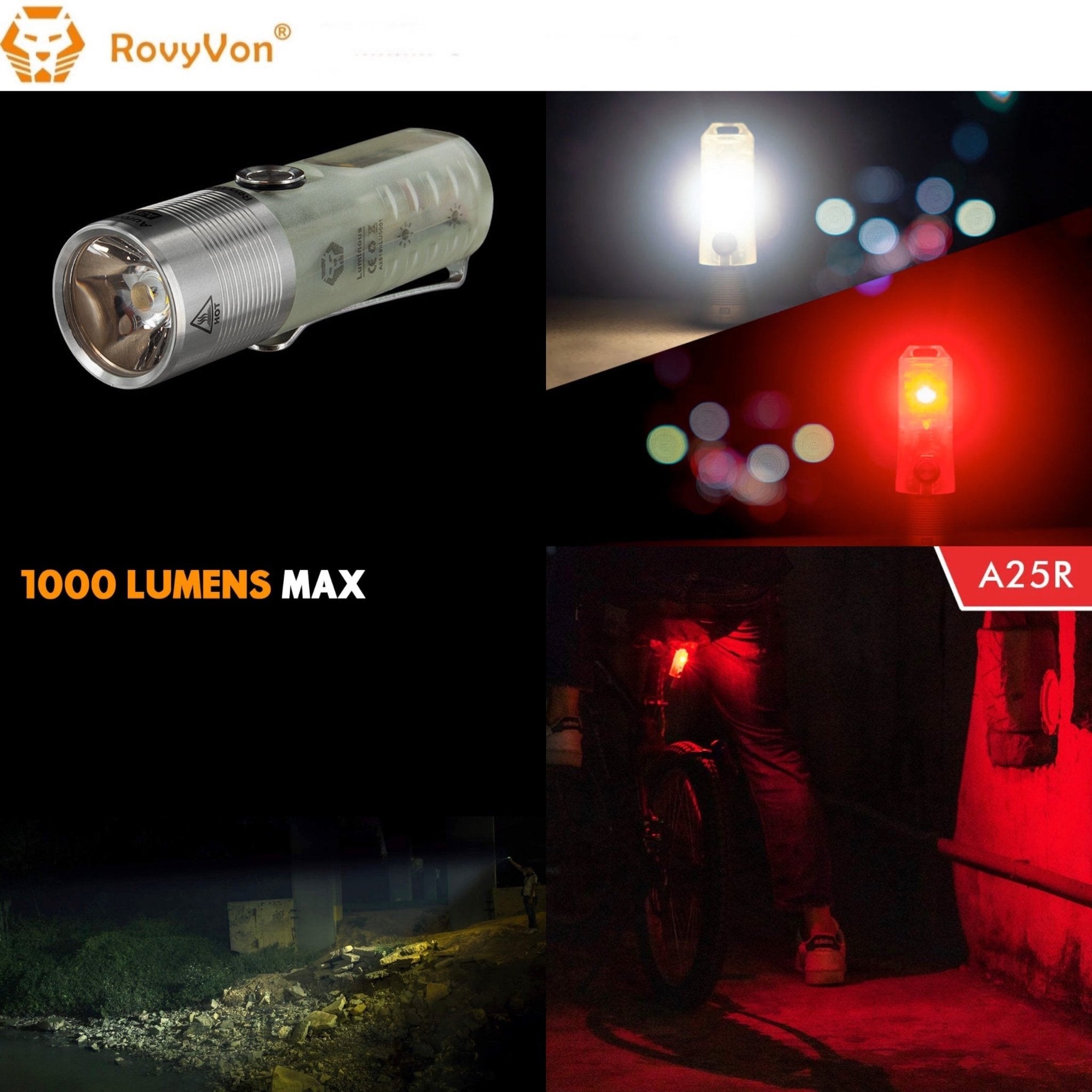 ใช้หลอด CREE XP-L HD V6 1000 Lumens 5800CD อุณหภูมิสี 6500K CRI70 กระจายแสงแบบฟลัดไลท์ด้วยเลนส์แบบ TIR ระยะส่องสว่างไกลสุด 150 เมตร ปรับระดับแสงได้ 4 ระดับ