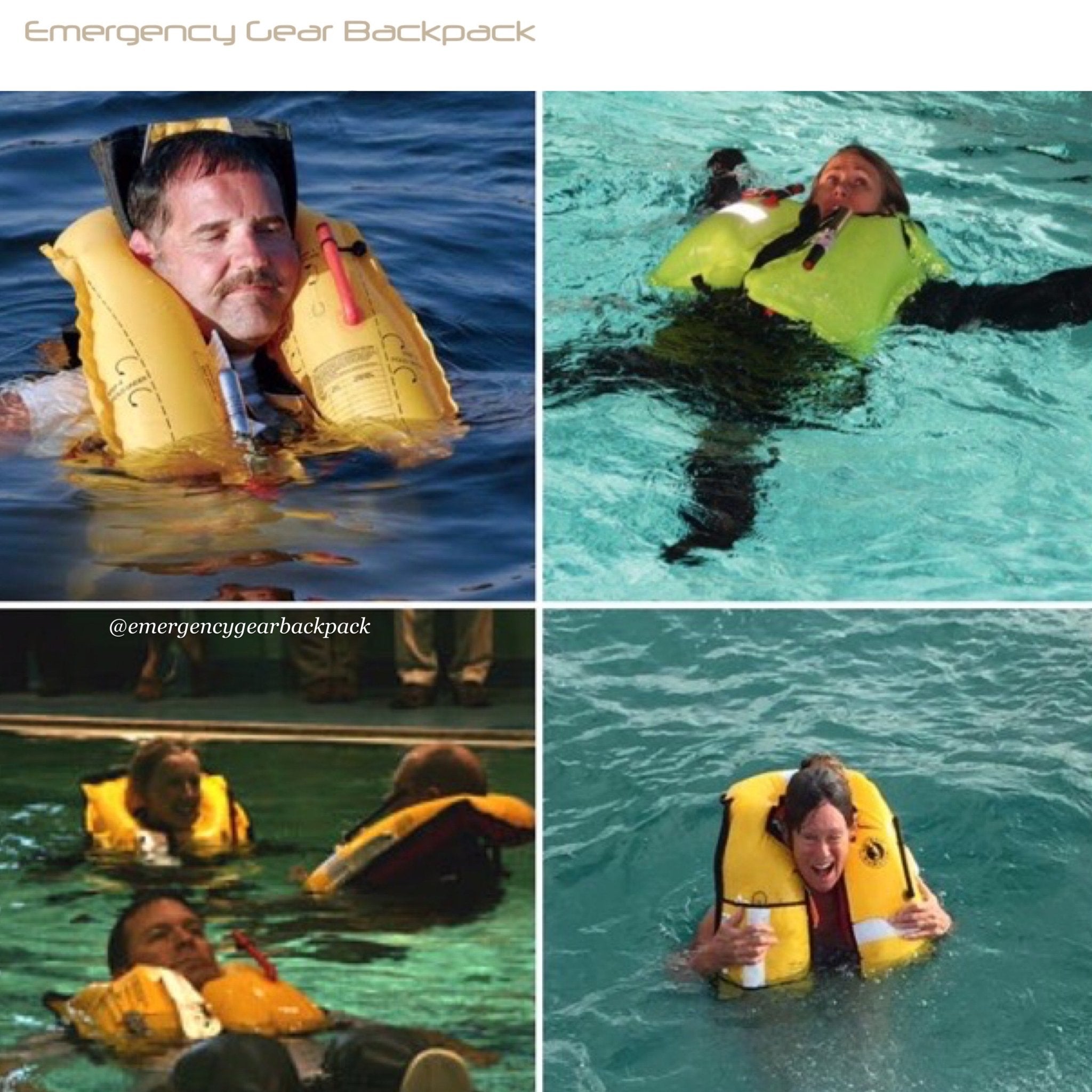 2) ในกรณีประสบเหตุฉุกเฉินทางน้ำ เสื้อชูชีพจะพองลมอัตโนมัติภายใน 5 วินาทีเมื่อสัมผัสกับน้ำ