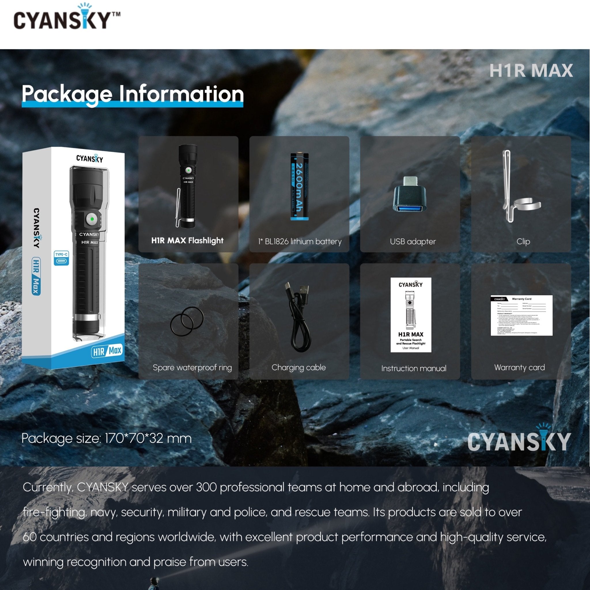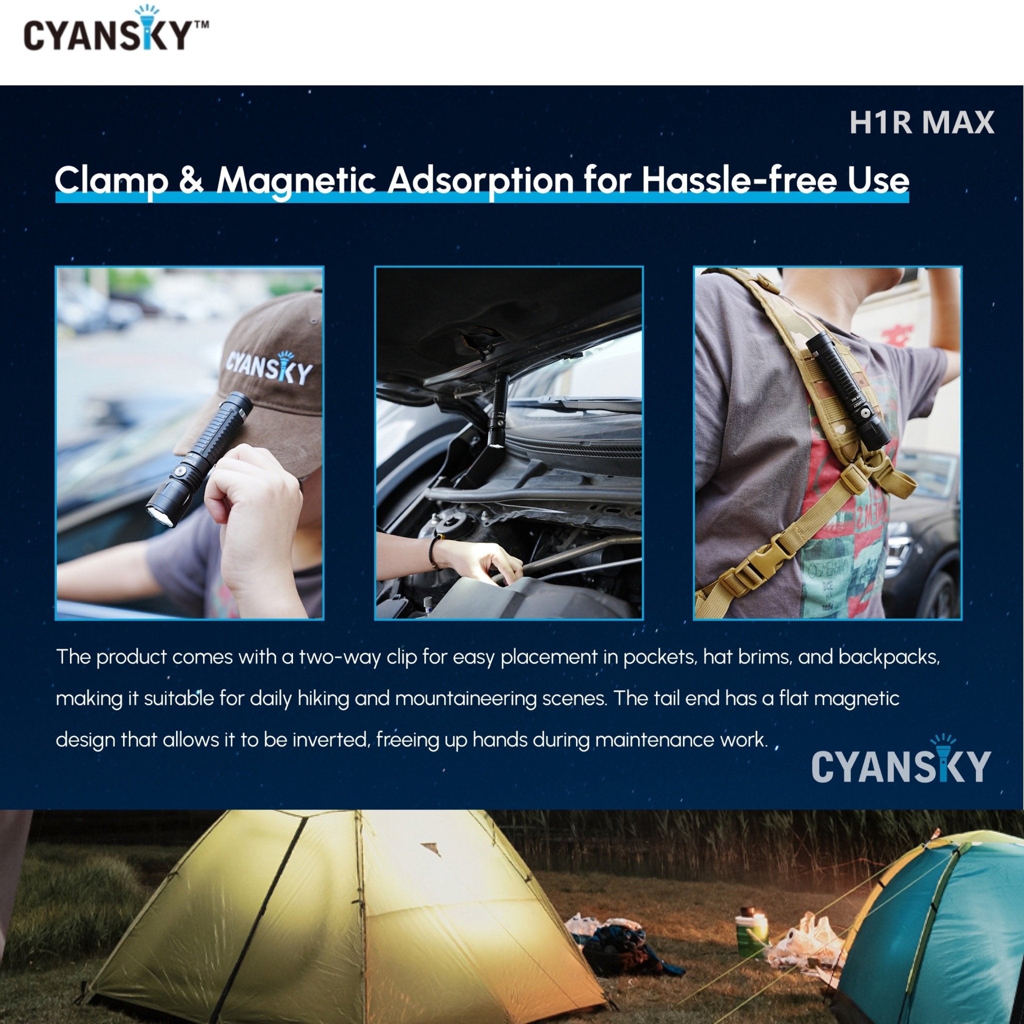Cyansky H1R Max มาพร้อมสายคล้องมือ คลิปสองทางใช้เหน็บกระเป๋า หรือเสียบกับหมวก ฝาท้ายแบบแม่เหล็กแรงสูง ยึดติดกับพื้นผิวโลหะได้แน่น เพิ่มความเอนกประสงค์ในการใช้งาน