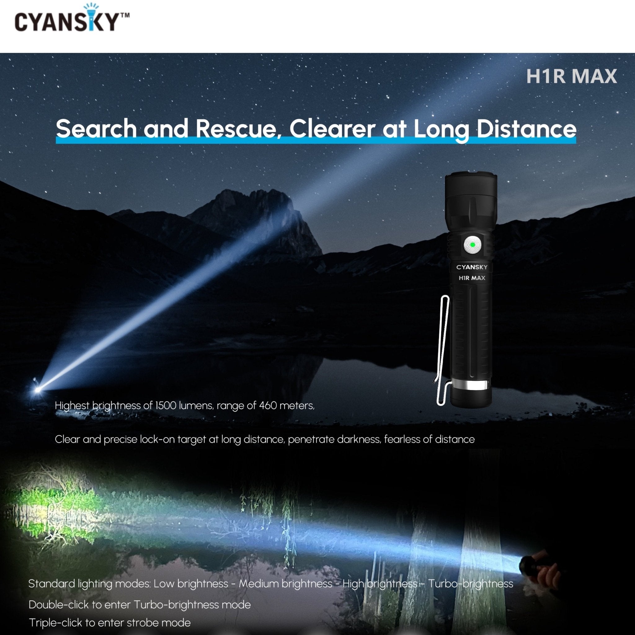 Cyansky H1R Max มีค่าความสว่าง 1500 Lumens โคมสะท้อนผิวส้มช่วยเพิ่มการกระจายแสงในแนวกว้าง ออกแบบให้มุมแสงพุ่งที่ 14° และมุมแสงกว้างที่ 52° สร้าง Hotspot ดวงกลมใหญ่ สปิลแสงกว้าง ให้ลำแสงเข้ม แสงพุ่งไกล 460 เมตร