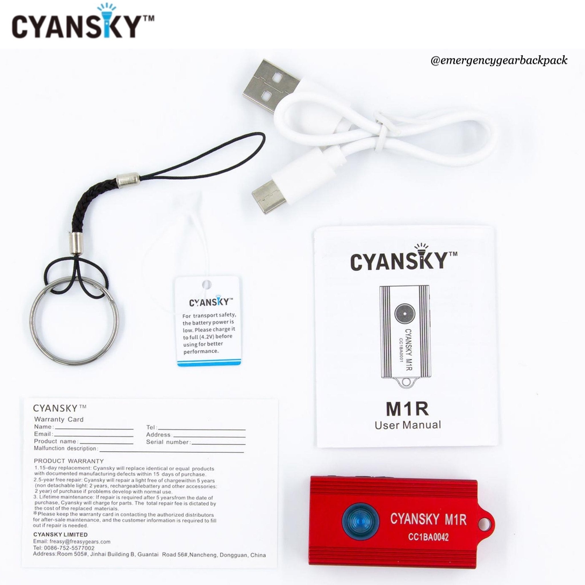 Cyansky M1R ไฟฉายพวงกุญแจขนาดเล็ก ผลิตขึ้นรูปจากอลูมิเนียมอัลลอย น้ำหนักเบาเพียง 19.5 กรัม ใช้หลอด LED x 3 หลอด ให้แสงขาว แดง และ UV365nm