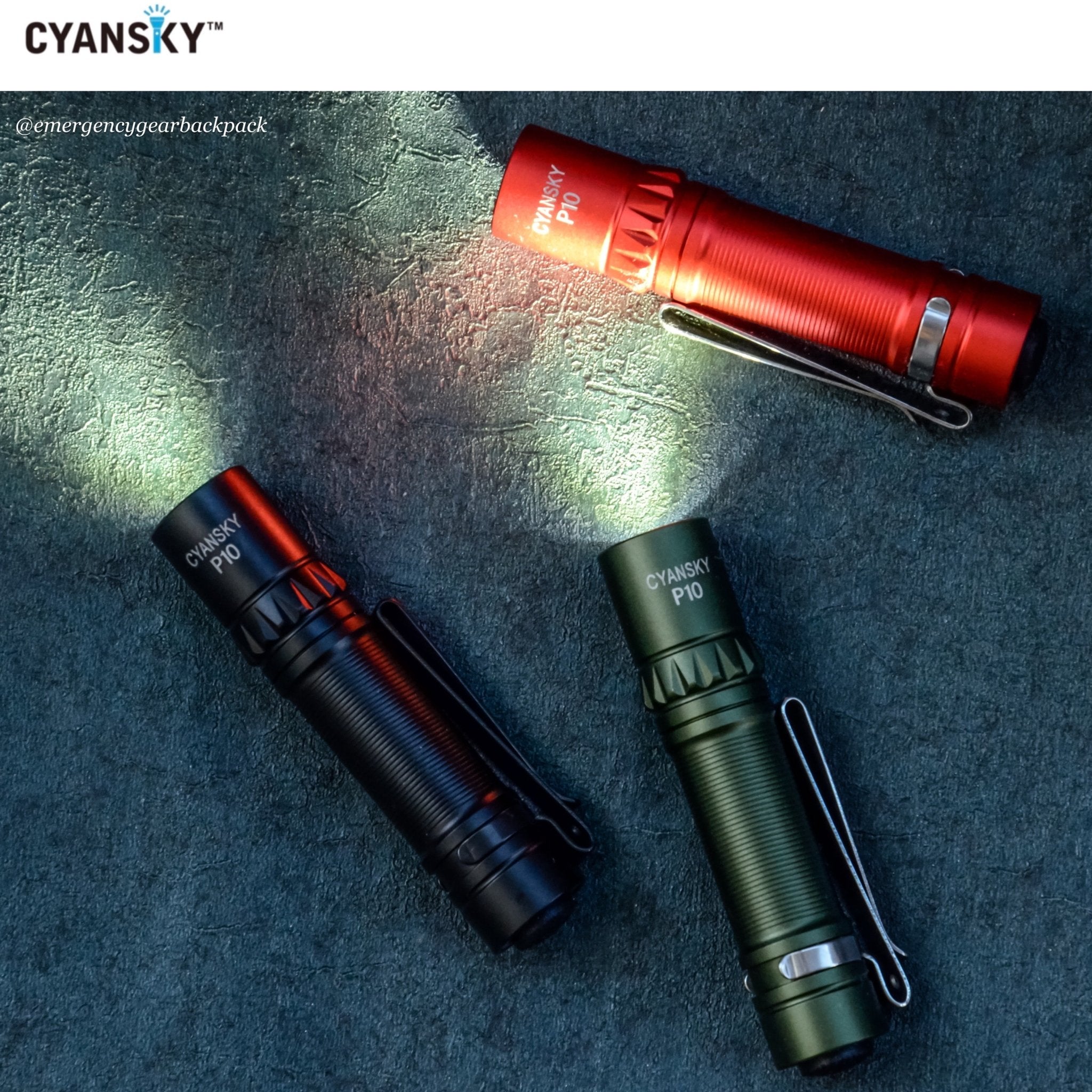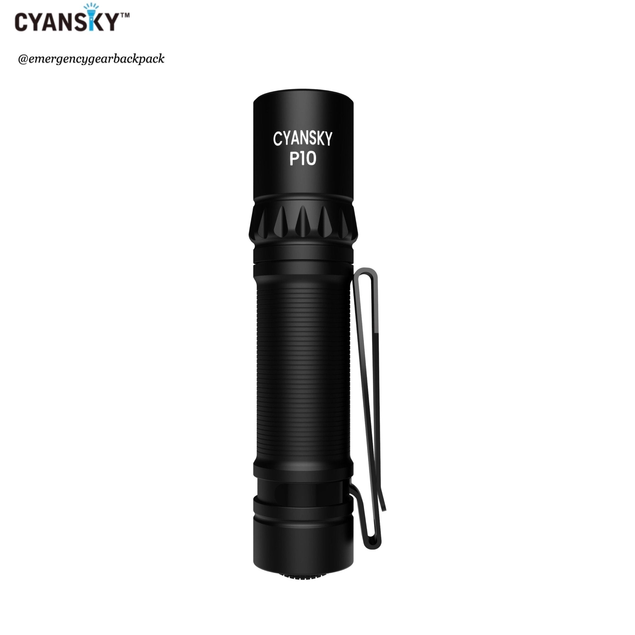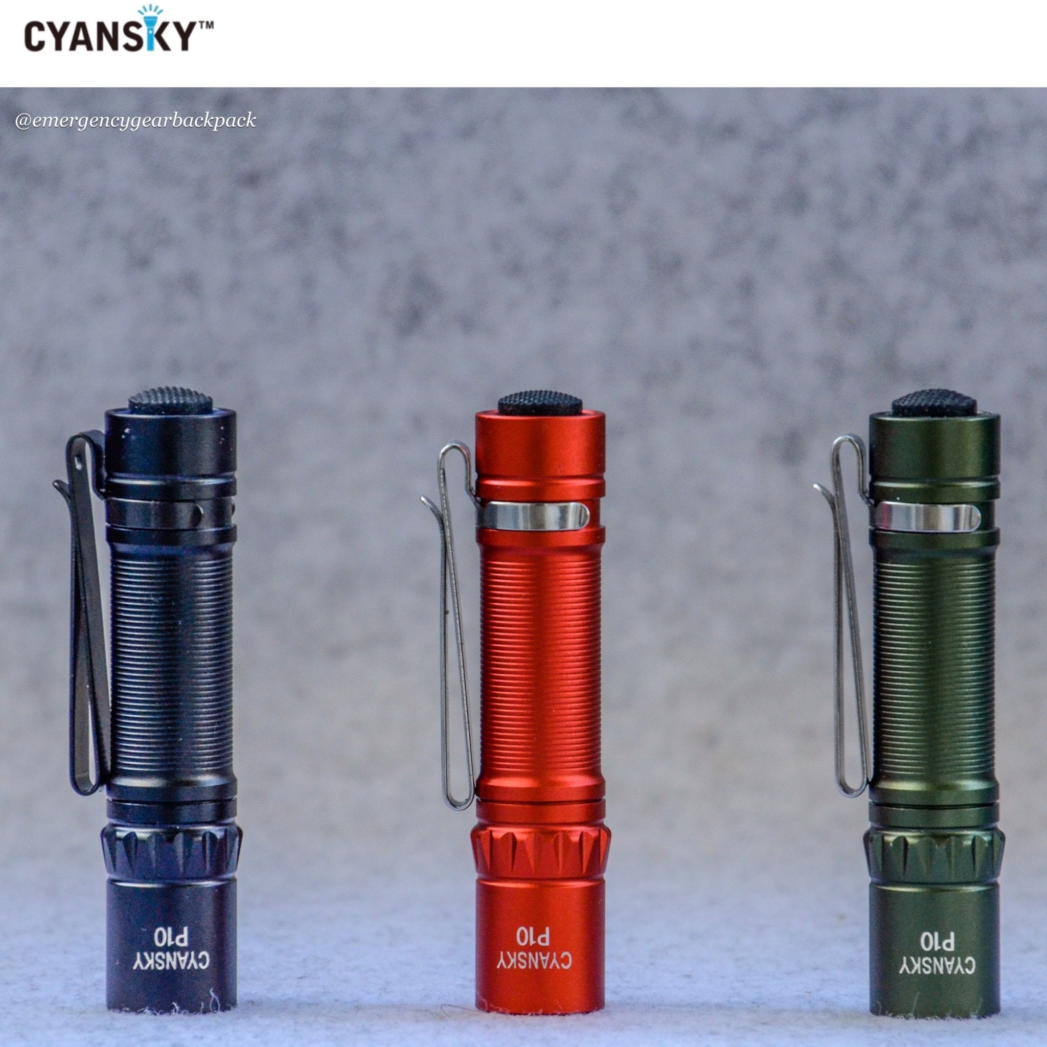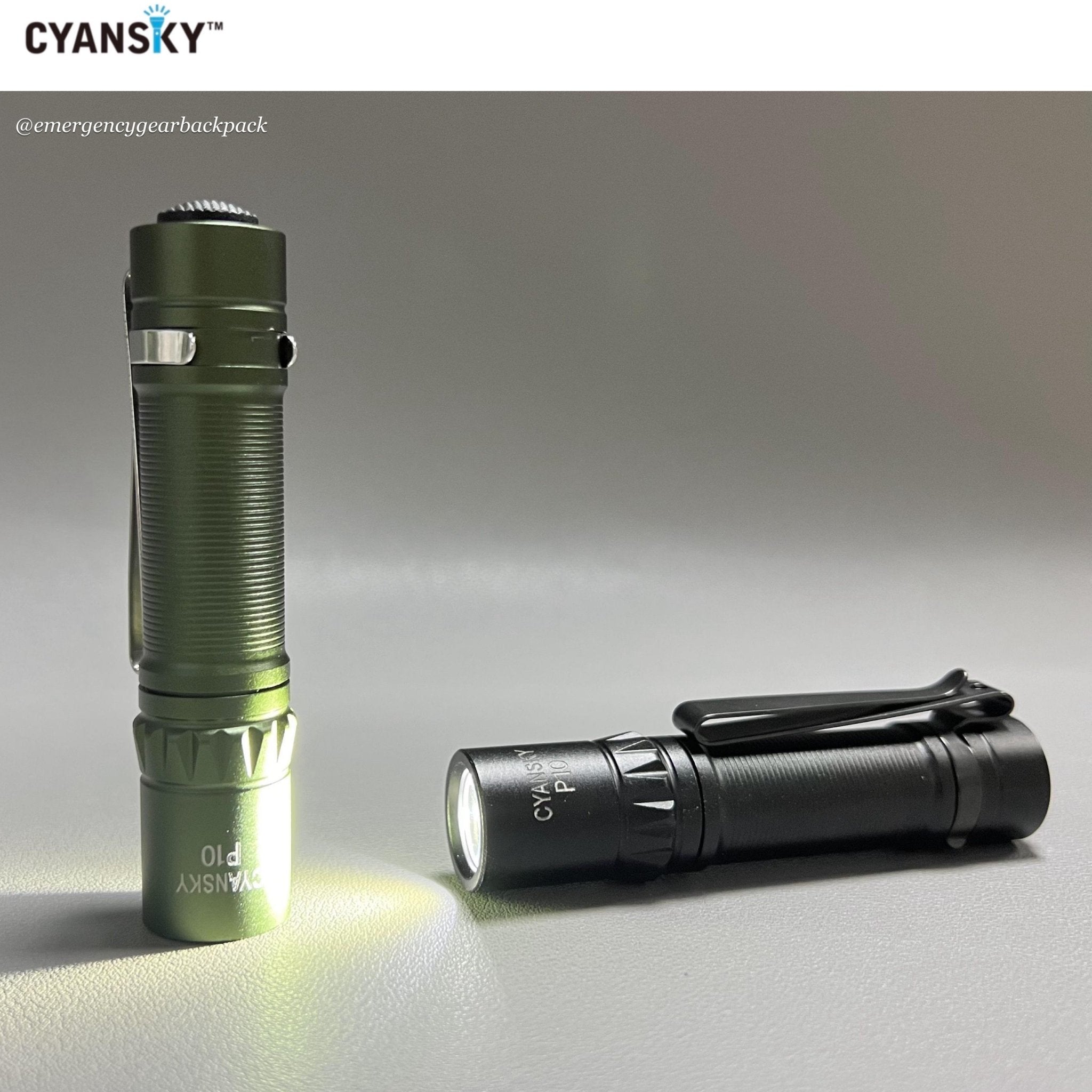 Cyansky P10 ไฟฉายพกพาขนาดเล็ก ใช้หลอด OSRAM Duris P9 300LMS 6500K กระจายแสงแบบฟลัดไลท์ผ่าน TIR Lens ให้มุมแสงพุ่งที่ 8° มุมแสงกว้างที่ 37° เกลี่ยแสงได้สม่ำเสมอ ลำแสงเข้ม แสงพุ่งกว้างไกล 60 เมตร ให้ความสว่างเพียงพอต่อการใช้งาน กระจายแสงได้นิ่มนวลตาในโหมดไฟต่ำ ใช้อ่านหนังสือ หรือใช้งานในระยะใกล้ได้ดี