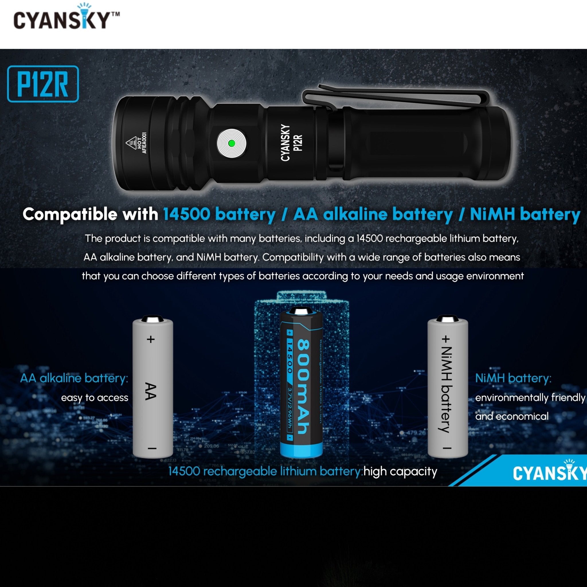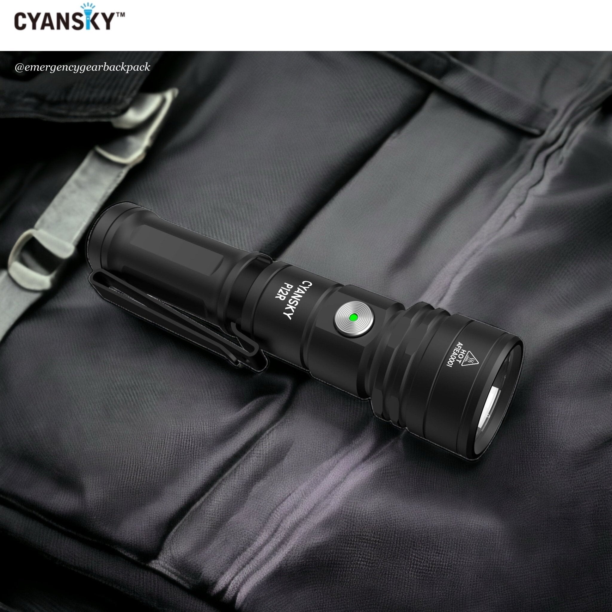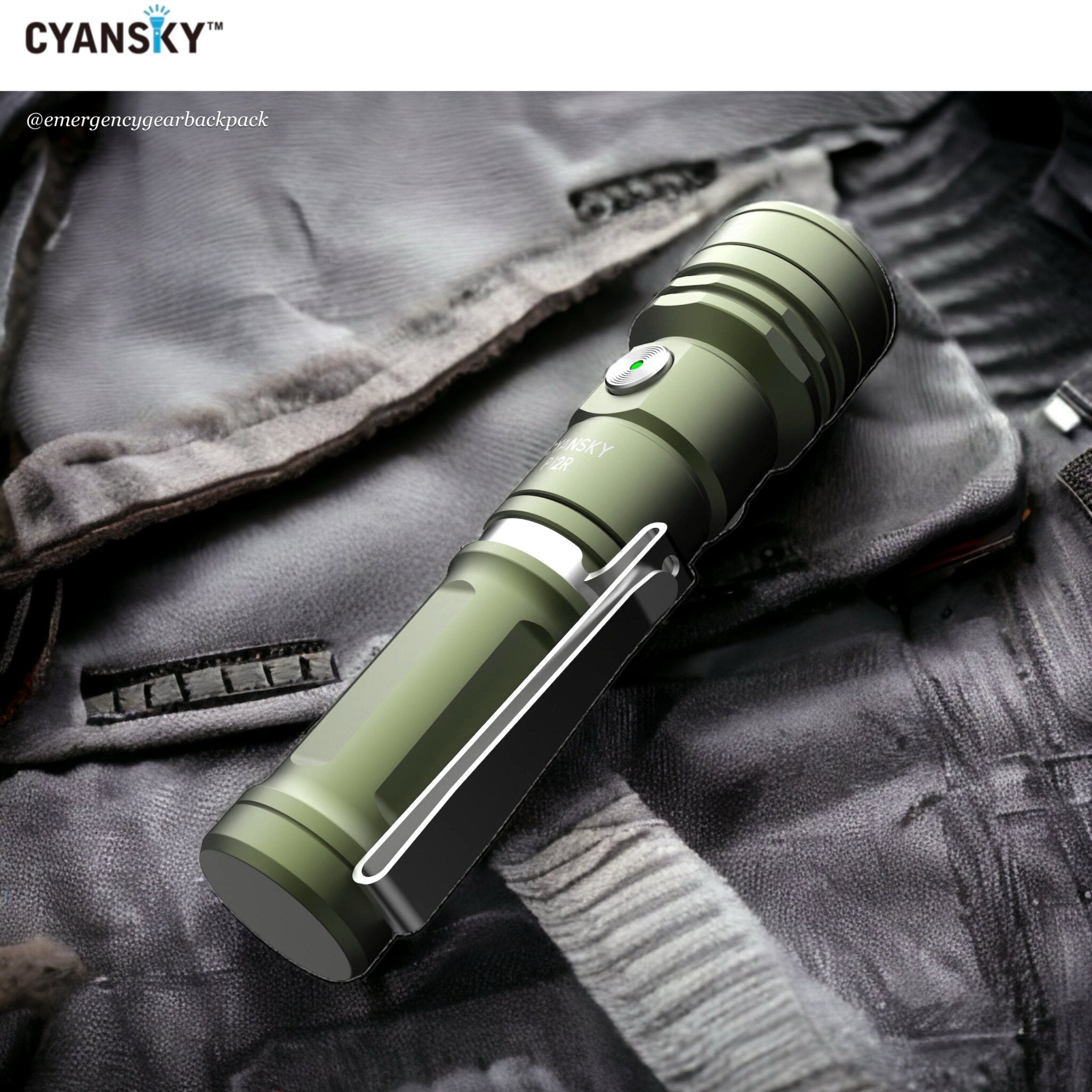 Cyansky P12R ไฟฉายพกพาประสิทธิภาพสูงขนาดเล็ก ใช้หลอด OSRAM P9 1300LMS 6500K แสงพุ่งไกล 240 เมตร ออกแบบให้มุมแสงพุ่งที่ 12° และมุมแสงกว้างที่ 56° ผสมผสานระหว่างไฟพุ่งกับไฟกว้างอย่างลงตัว