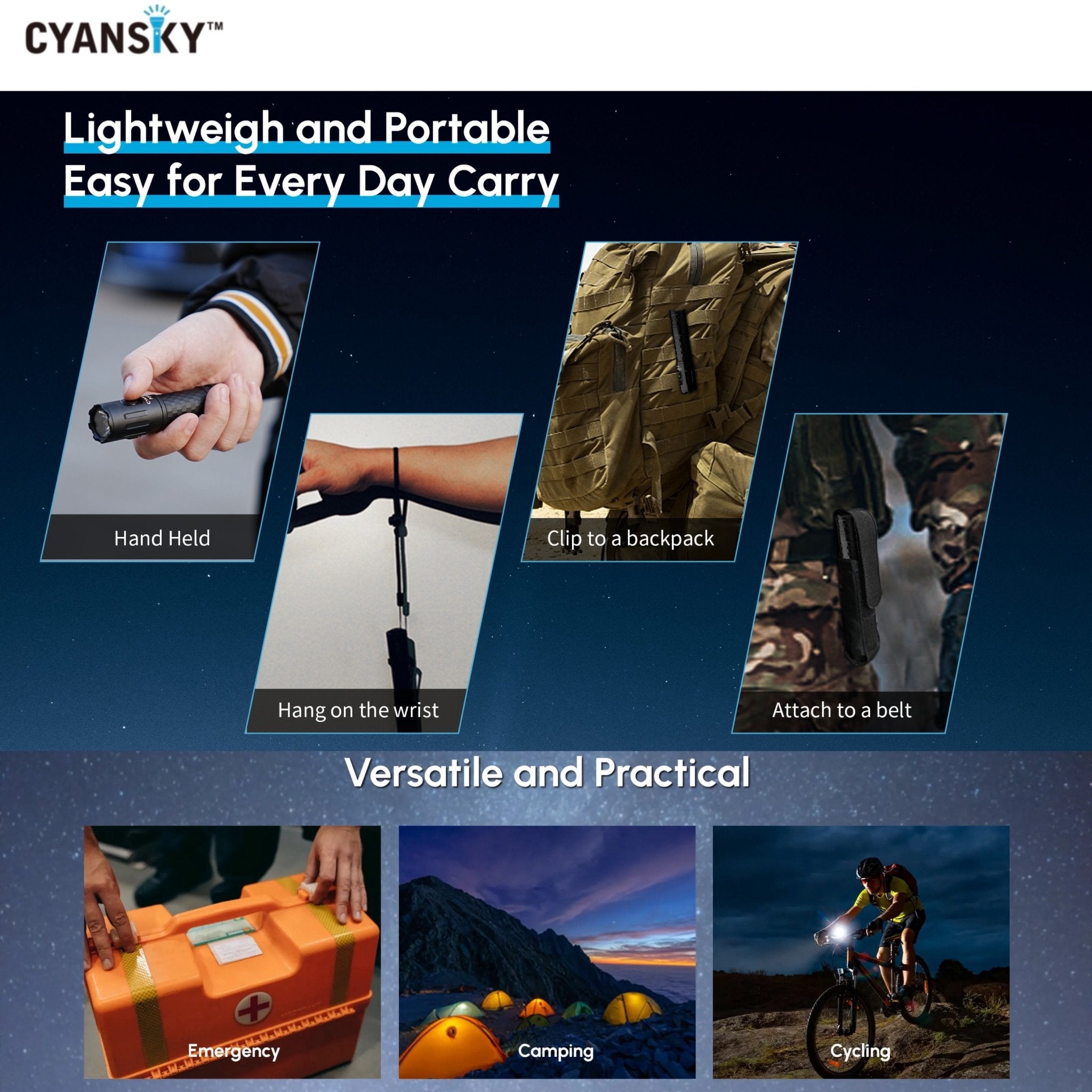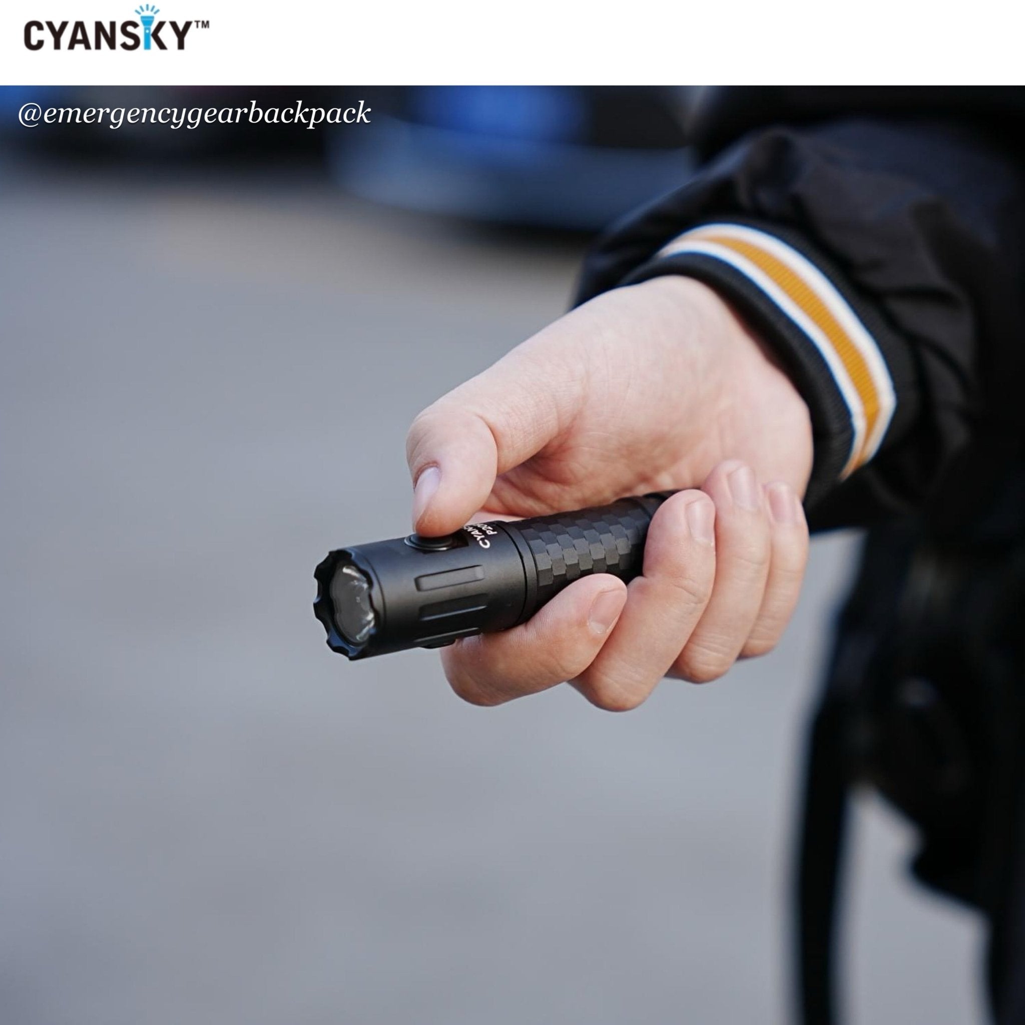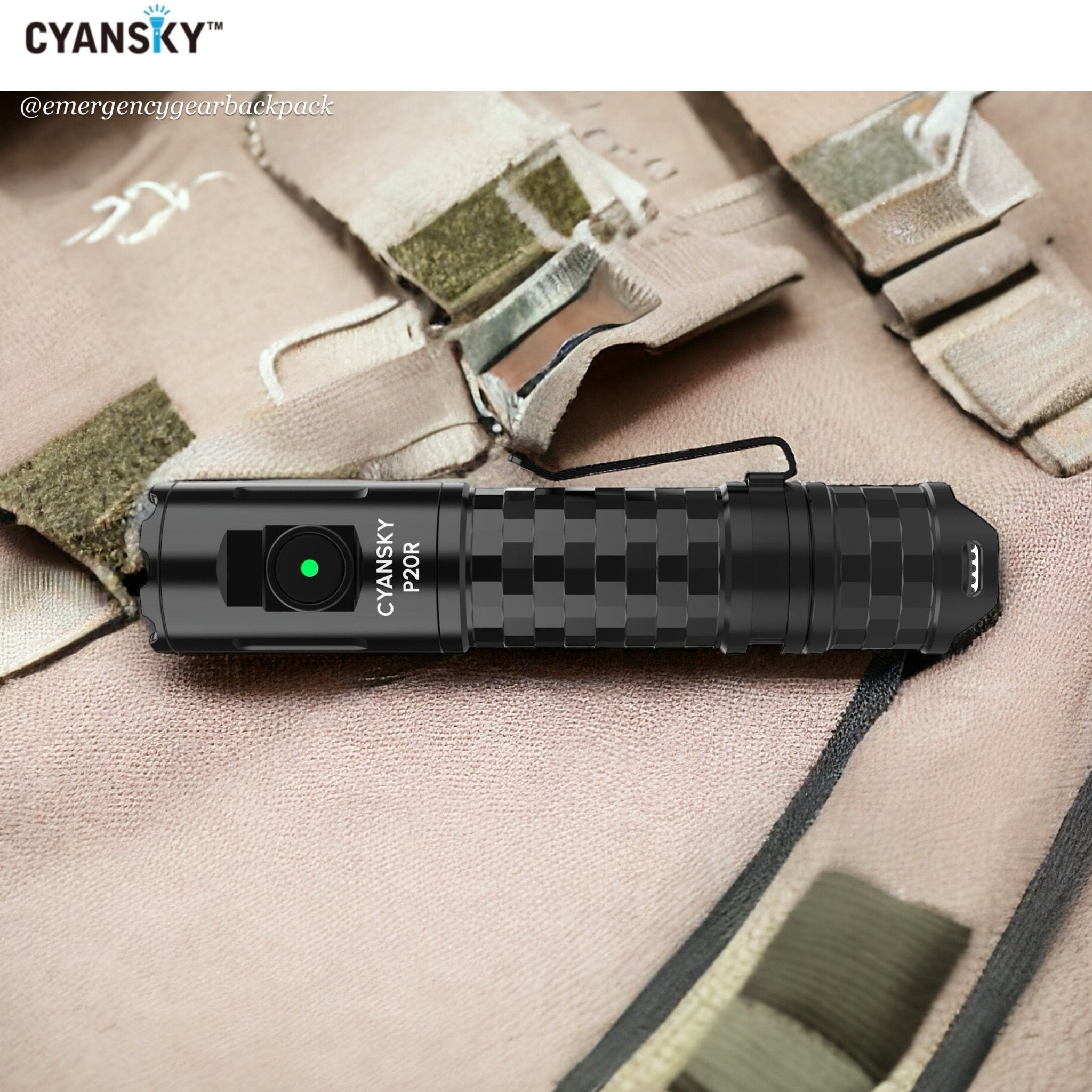 Cyansky P20R ไฟฉายขนาดคอมแพคใช้หลอด Luminus SST-40 LED 1900 Lumens อุณหภูมิสี 6500K โคมสะท้อนแสงอลูมิเนียมผิวเรียบ สะท้อนผิวส้มช่วยกระจายแสงในแนวกว้าง กระจายแสงแบบฟลัดไลท์ผ่าน TIR Lens ให้มุมแสงพุ่งที่ 24° มุมแสงกว้างที่ 44° สร้าง Hotspot ดวงกลมใหญ่ สปิลแสงวงกว้าง เกลี่ยแสงสม่ำเสมอ ลำแสงเข้ม ระยะส่องสว่างไกลสุด 210 เมตร