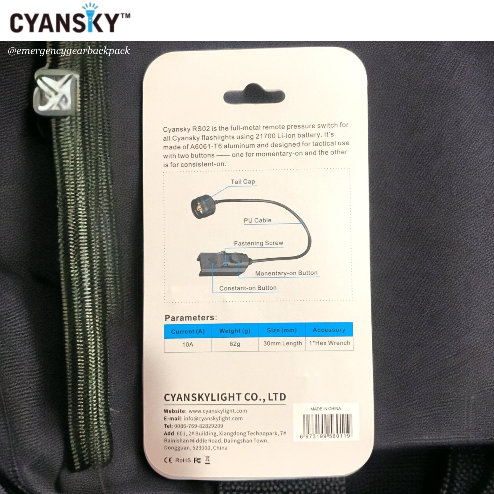 สวิตช์หางหนู CYANSKY RS02 เป็นอุปกรณ์เสริมสำหรับไฟฉายรุ่น P25, H3, H5, K3 และ H5GT ออกแบบมาเพื่อเพิ่มความสะดวกในการควบคุมไฟฉายในภาคสนาม โดยเฉพาะสำหรับงานยุทธวิธี การลาดตระเวน หรือภารกิจที่ต้องการการควบคุมแสงอย่างรวดเร็วโดยไม่ต้องปล่อยมือจากอุปกรณ์หลัก