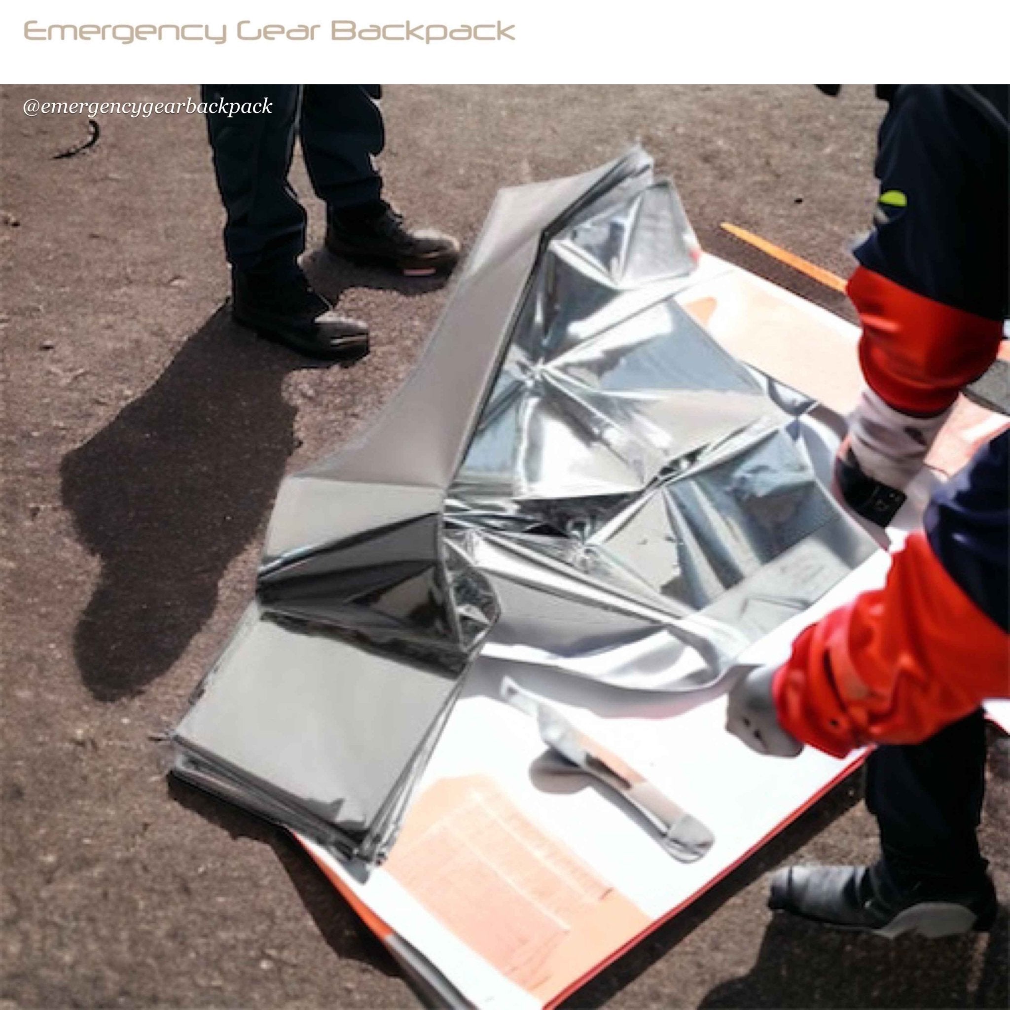 ผ้าห่มฉุกเฉินเป็นแผ่นพลาสติกขนาดบางเคลือบฟอยล์ไมลาร์ (PET film) ขนาดเมื่อกางออก กว้าง 52" x ยาว 84" (132 x 213 ซม.) มีคุณสมบัติในการกักเก็บความร้อน สะท้อนความร้อน สะท้อนแสง กันน้ำ กันลม เหมาะสำหรับใช้งานในสถานการณ์ฉุกเฉิน, การเดินทางไกล, การแคมป์ปิ้ง หรือชุดเตรียมพร้อมรับภัยพิบัติ (Emergency Go-Bag / Survival Kit)