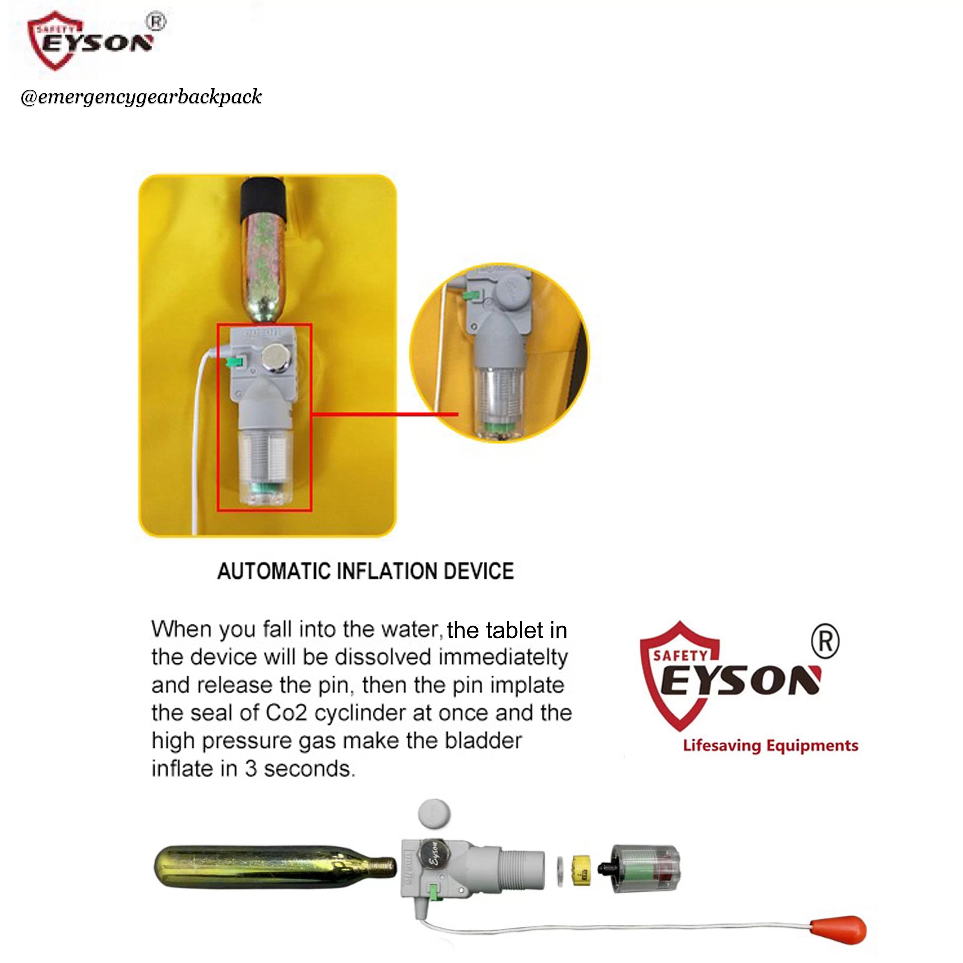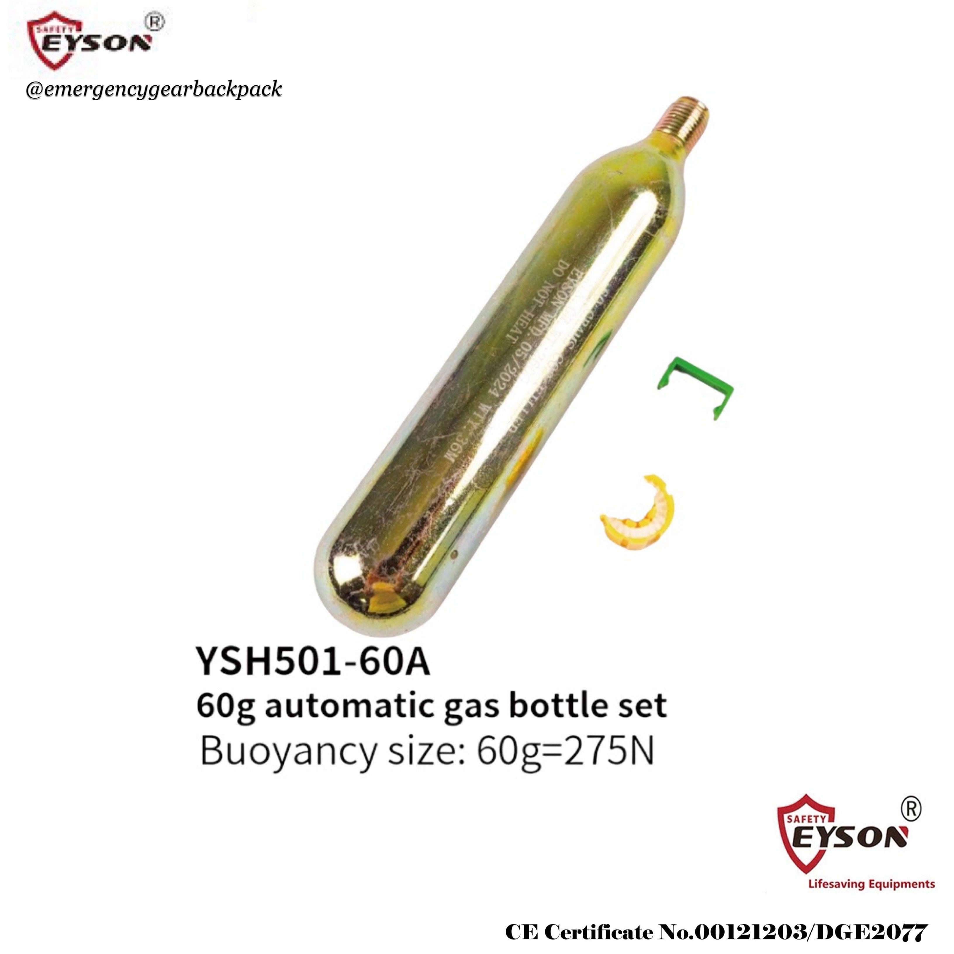 ใช้ถัง CO2 ขนาด 60g: บรรจุก๊าซในปริมาณที่เหมาะสม เพื่อสร้างแรงลอยตัว 275N ได้อย่างรวดเร็วและเต็มประสิทธิภาพเมื่อพองลม ถัง CO2 ที่ใหญ่ขึ้นจะให้ปริมาณลมที่มากกว่า ทำให้เสื้อชูชีพพองตัวได้เต็มที่และให้แรงลอยตัวสูงสุดตามมาตรฐาน 275N