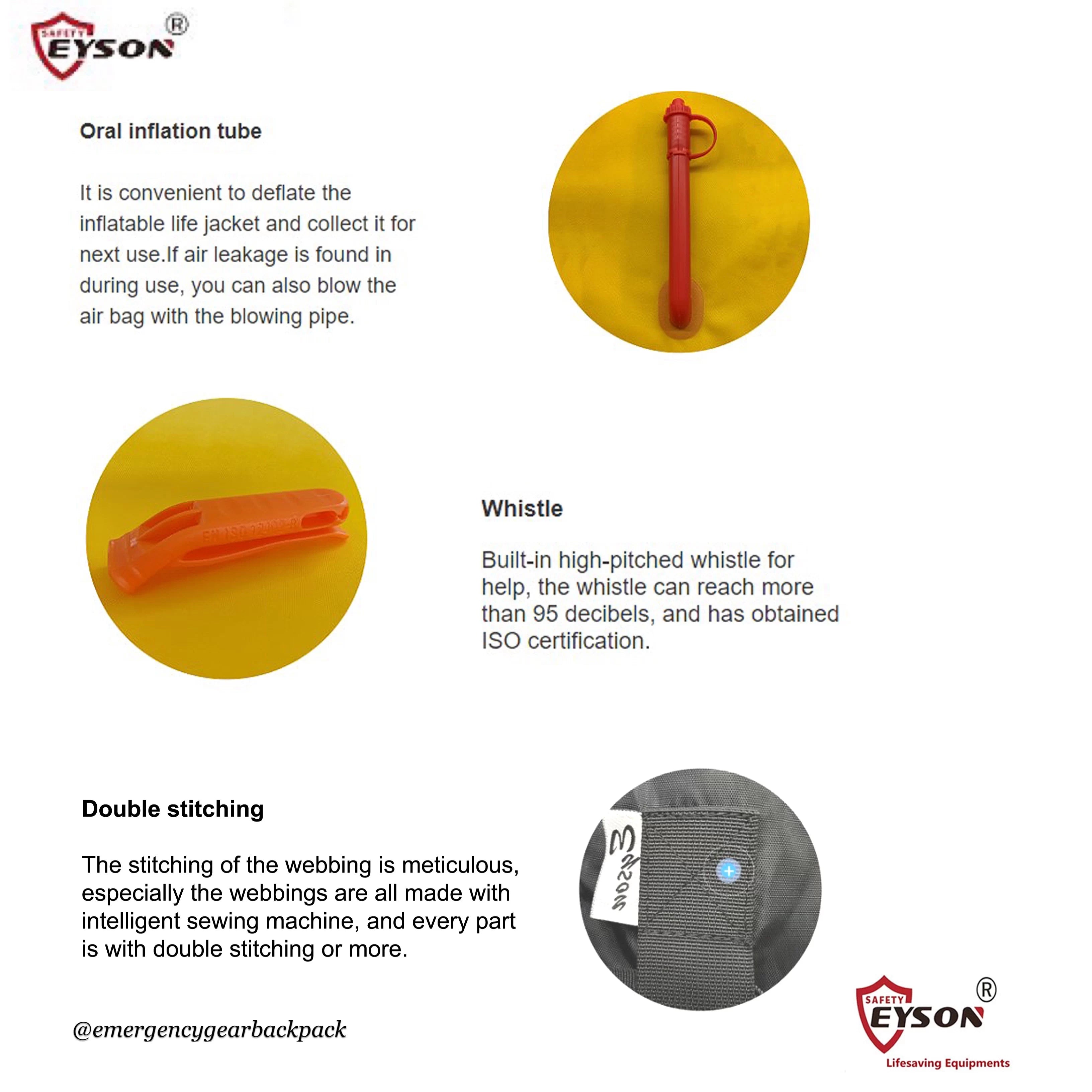 อุปกรณ์ช่วยชีวิตเสริม: มาพร้อมหลอดเป่าลม (Oral tube) ผลิตจากพลาสติก TPU ทนทาน และนกหวีดคุณภาพสูง ให้เสียงดังถึง 95 เดซิเบล เพื่อขอความช่วยเหลือ