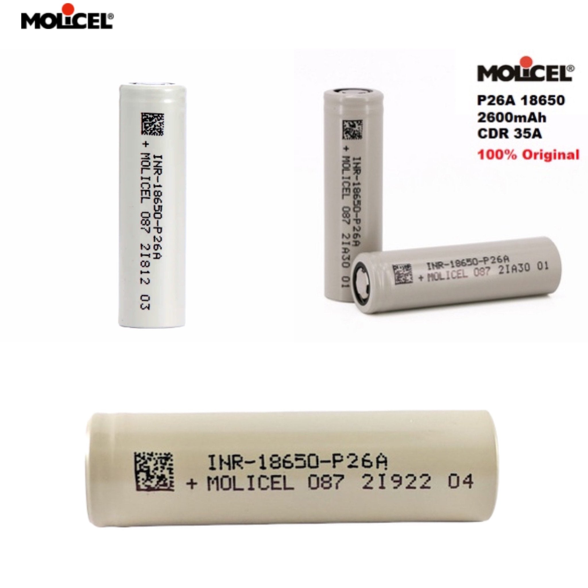 แบตเตอรี่คุณภาพสูง Molicel/NPE P26A ขั้วบวกหัวแบน Flat Top มาตรฐาน แกนเซลล์คุณภาพสูงเกรด A มีค่าแรงต้านทานภายในเซลล์ต่ำ แบตเตอรี่จ่ายกระแสไฟได้อย่างมีประสิทธิภาพ จ่ายกระแสไฟต่อเนื่องที่ 25A และสูงสุดที่ 35A เหมาะสำหรับอุปกรณ์ที่ต้องการกระแสไฟในปริมาณมากและรวดเร็ว รีชาร์จได้ 500 รอบการชาร์จ ประจุไฟในระบบจะยังคงเหลือ 80% หลังจาก 500 รอบ