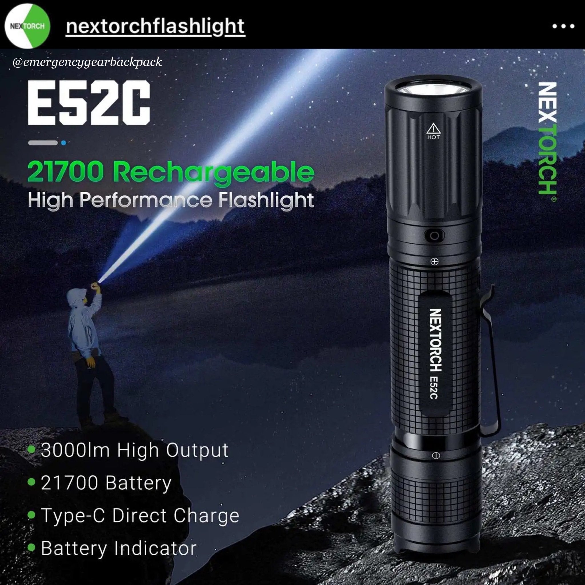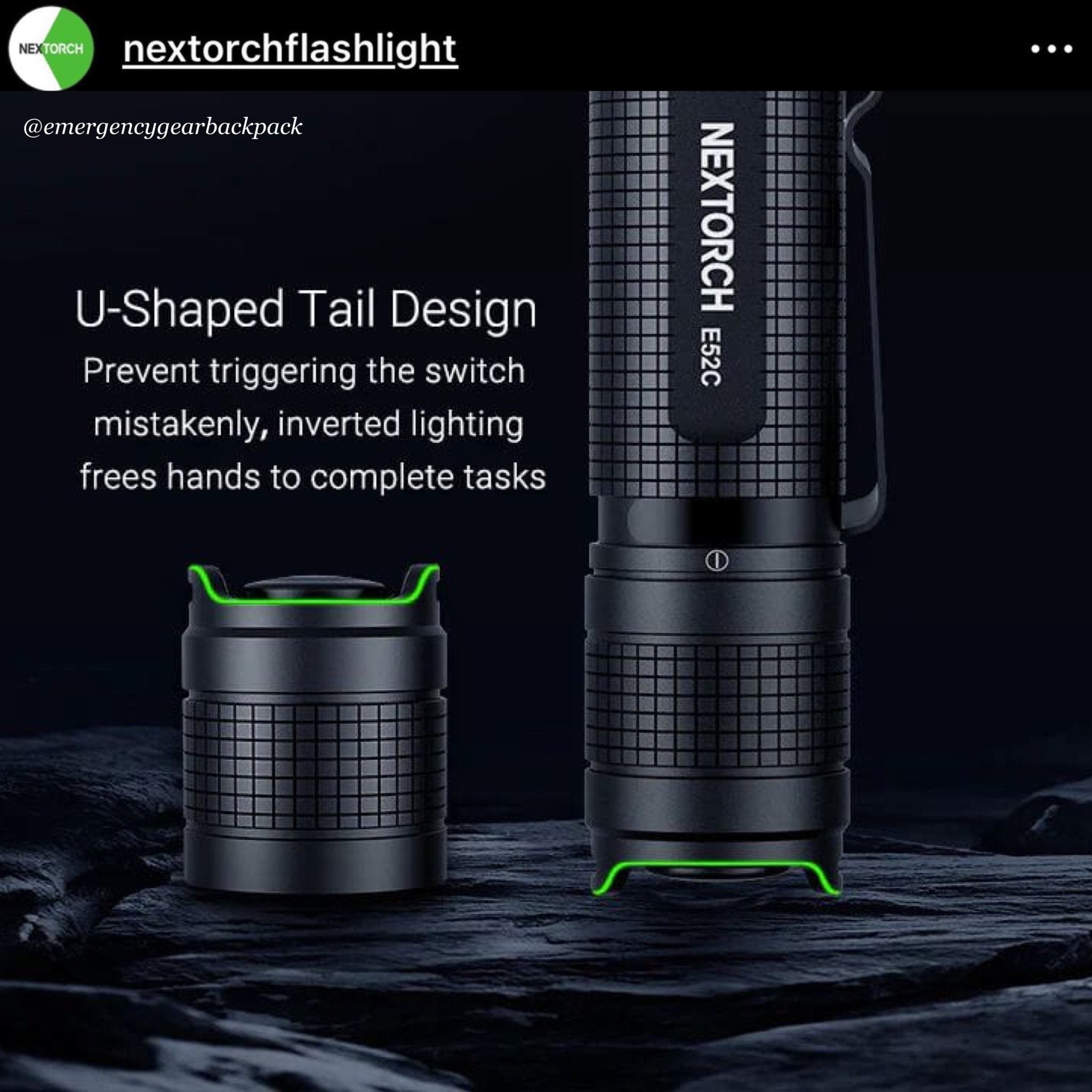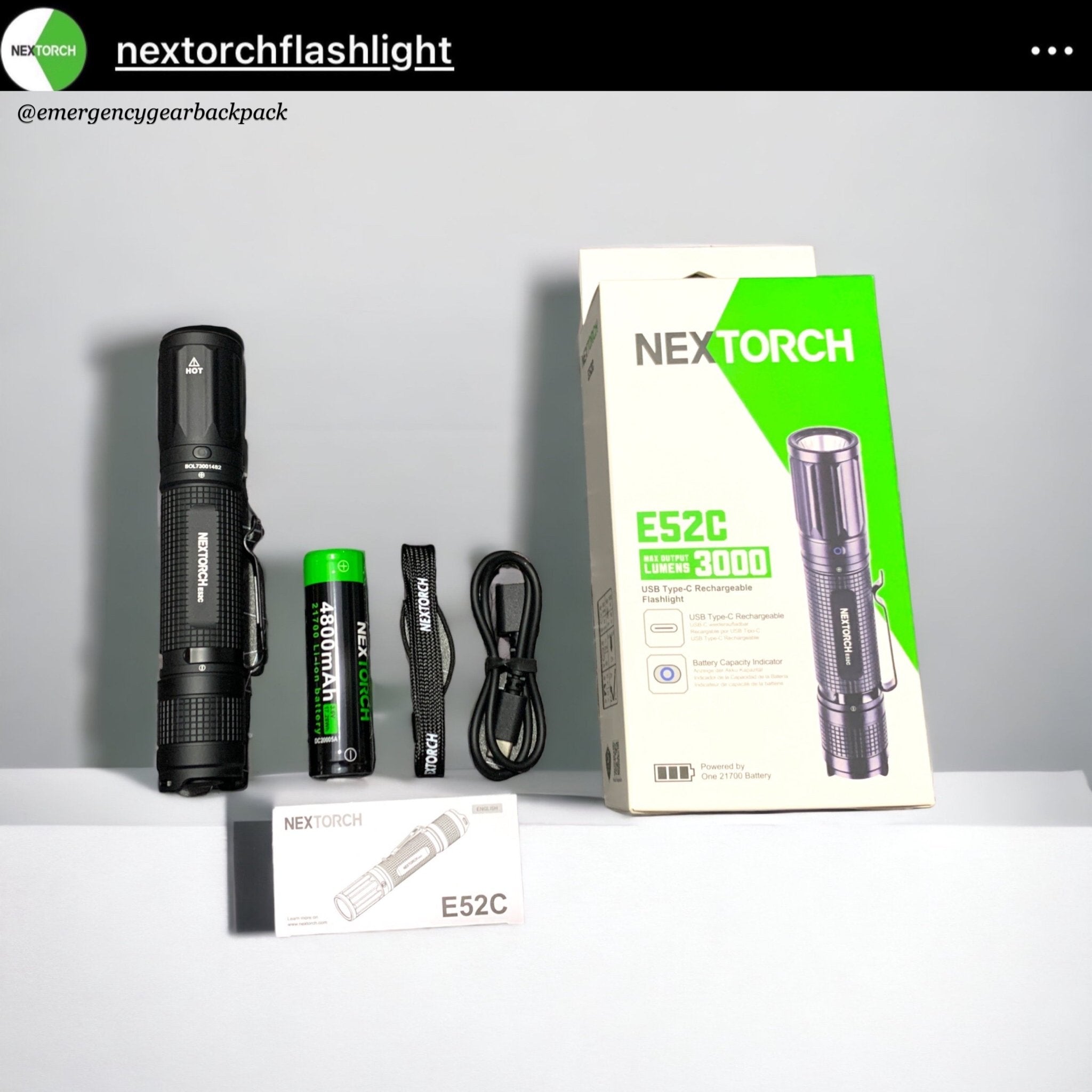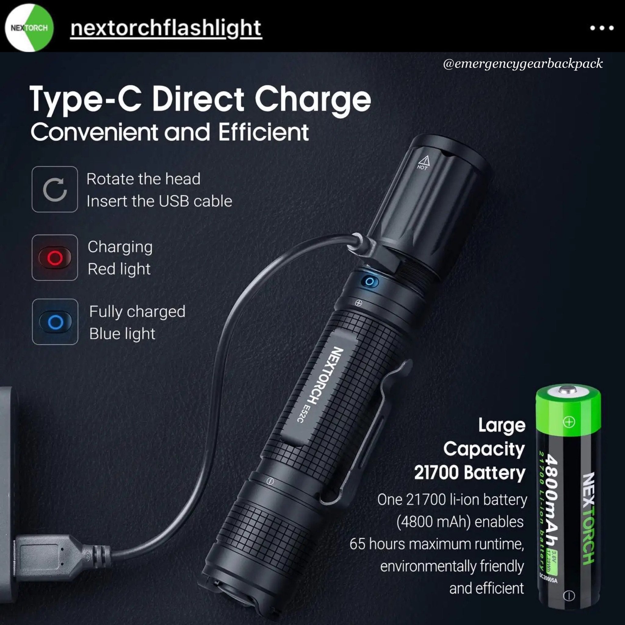 ไฟฉายออกแบบซ่อนพอร์ต USB Type-C อยู่ใต้ส่วนหัวไฟฉายเพื่อกันฝุ่น กันน้ำ มีไฟบอกสถานะการชาร์จ ชุดอุปกรณ์มาพร้อมแบตเตอรี่ NEXTORCH 21700 4800mAh 3.6V 17.28Wh Button Top Protected ให้รันไทม์นานสุดถึง 65 ชั่วโมง ในโหมดประหยัดไฟ