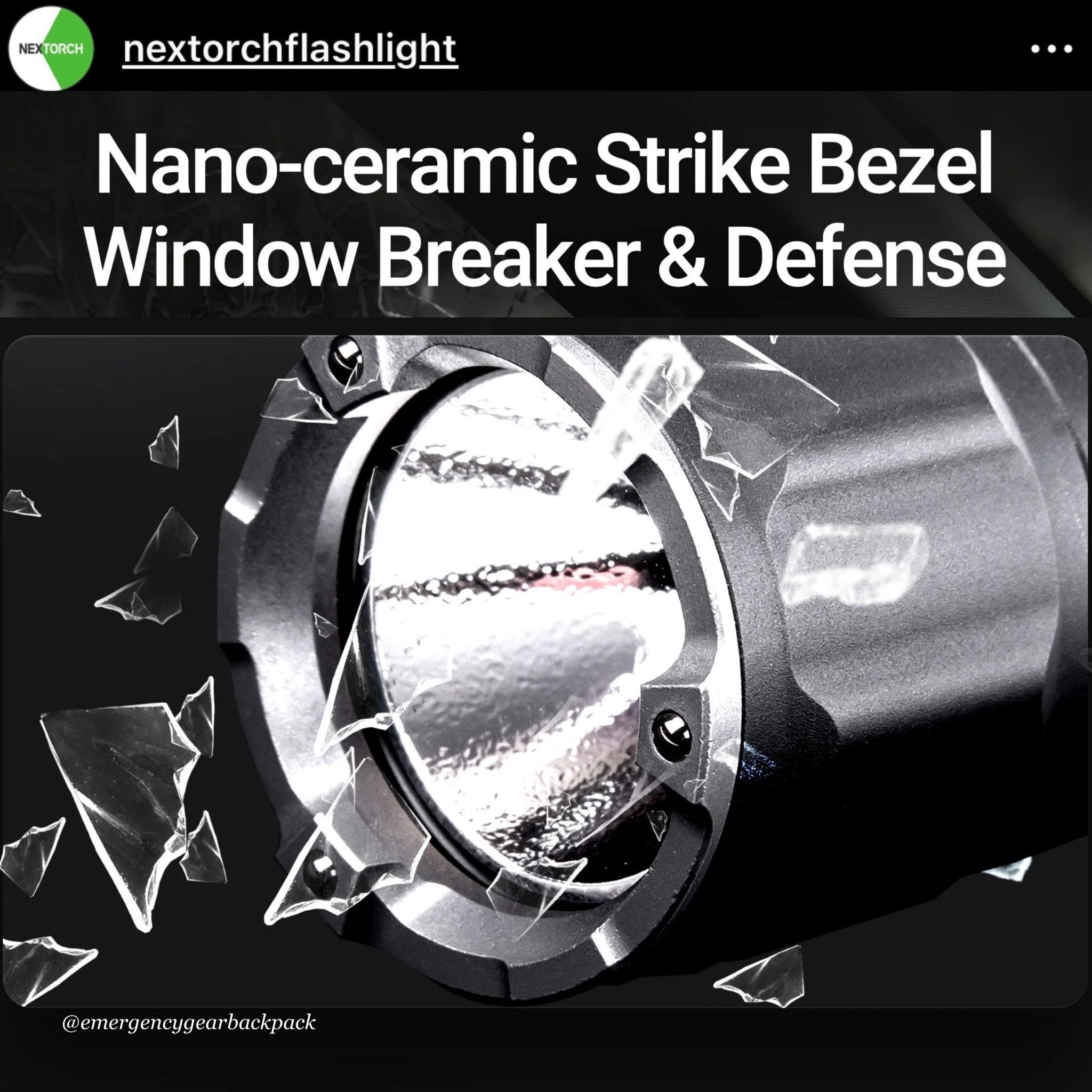 Grey titanium strike bezel: ฝาครอบไททาเนียมสีเทาฝังลูกปัด nano-ceramic 3 จุด เพิ่มความแข็งแรง รวมจุดส่งแรงทุบกระจกได้ง่ายขึ้นในกรณีฉุกเฉิน หรือใช้สำหรับการป้องกันตัว