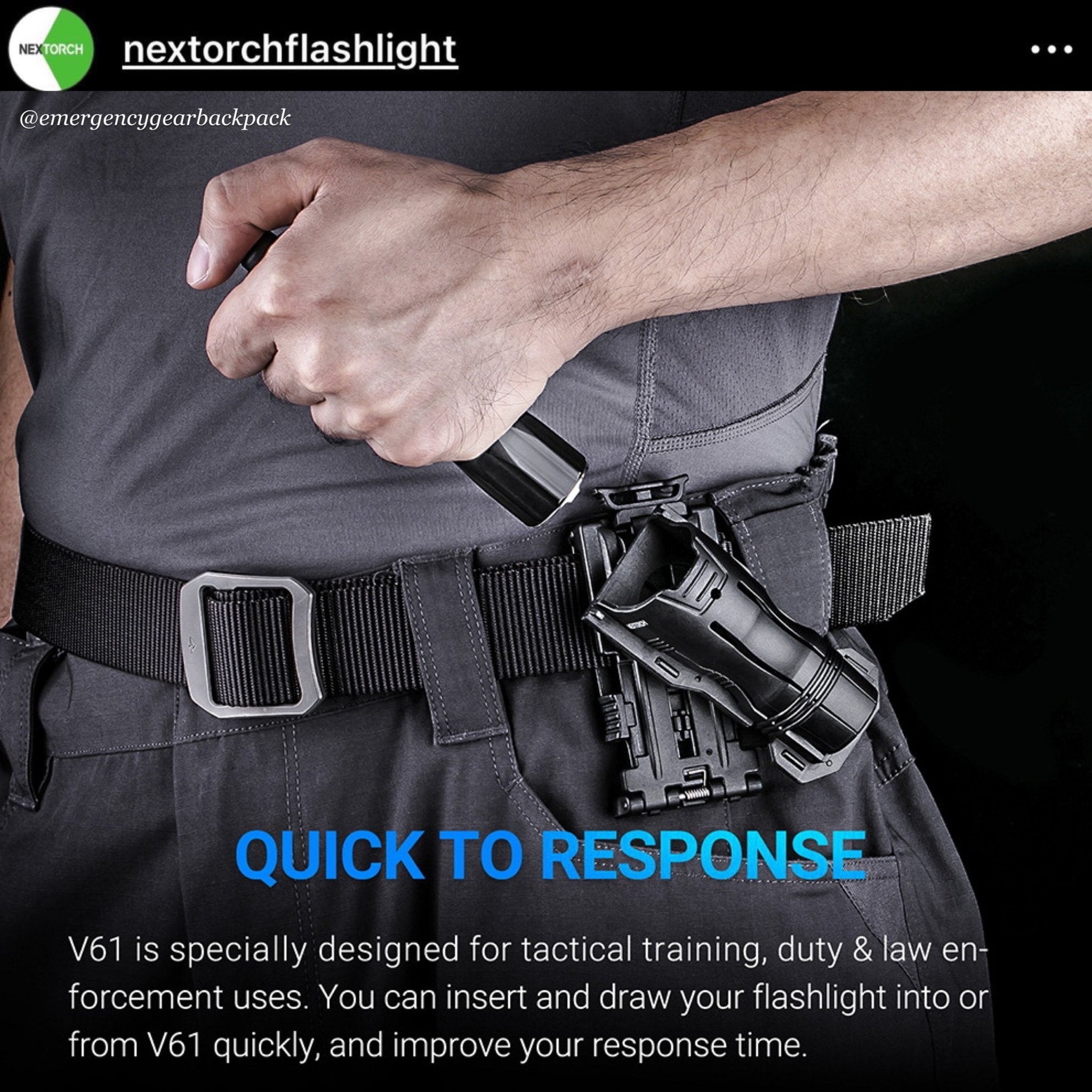 ซองไฟฉายคาดเอวแทคติตอล ออกแบบกลไกอย่างปราณีต ใช้งานง่าย ปลดไฟฉายออกจากซอง และเก็บใส่ได้รวดเร็ว ใส่ไฟฉายได้ทั้ง 2 ทางแบบ Head-In และ Tail-In รองรับไฟฉายที่มีเส้นผ่านศูนย์กลางส่วนหัวและลำตัว 27-30mm เปิดช่องว่างที่ปลายซองให้แสงส่องออกมาได้ แท่นยึดไฟฉายหมุนได้ 360° พร้อมตำแหน่งล็อค 16 ตำแหน่งเลือกใช้มุมที่ต้องการเพื่อใช้งานไฟฉายแบบแฮนด์ฟรี