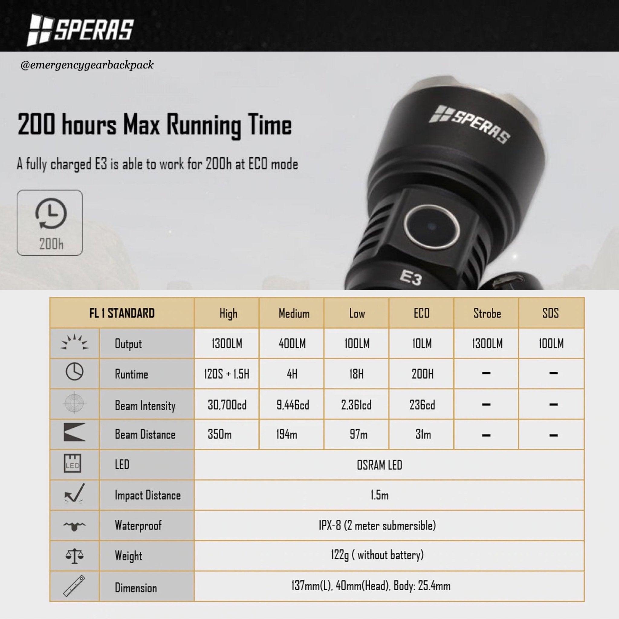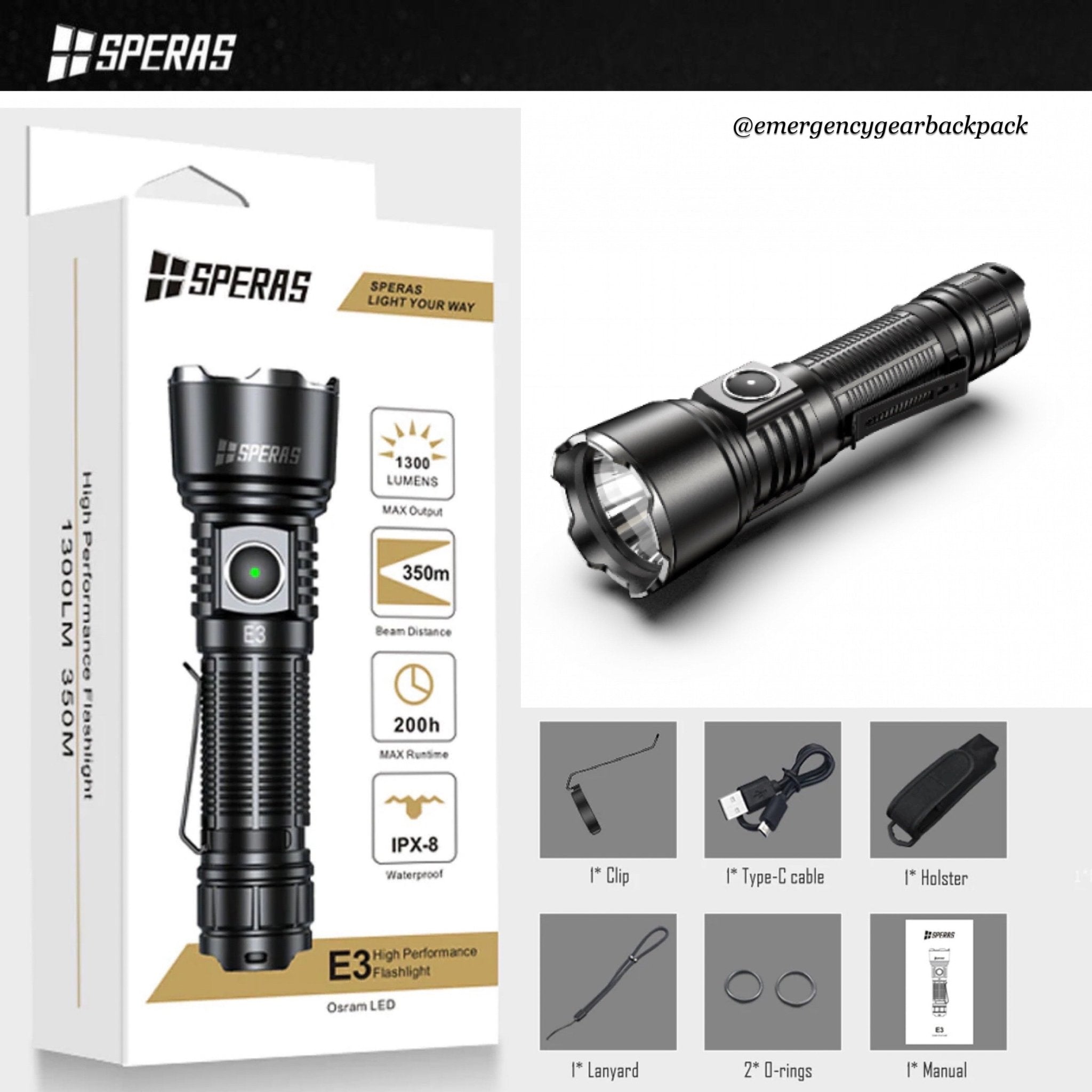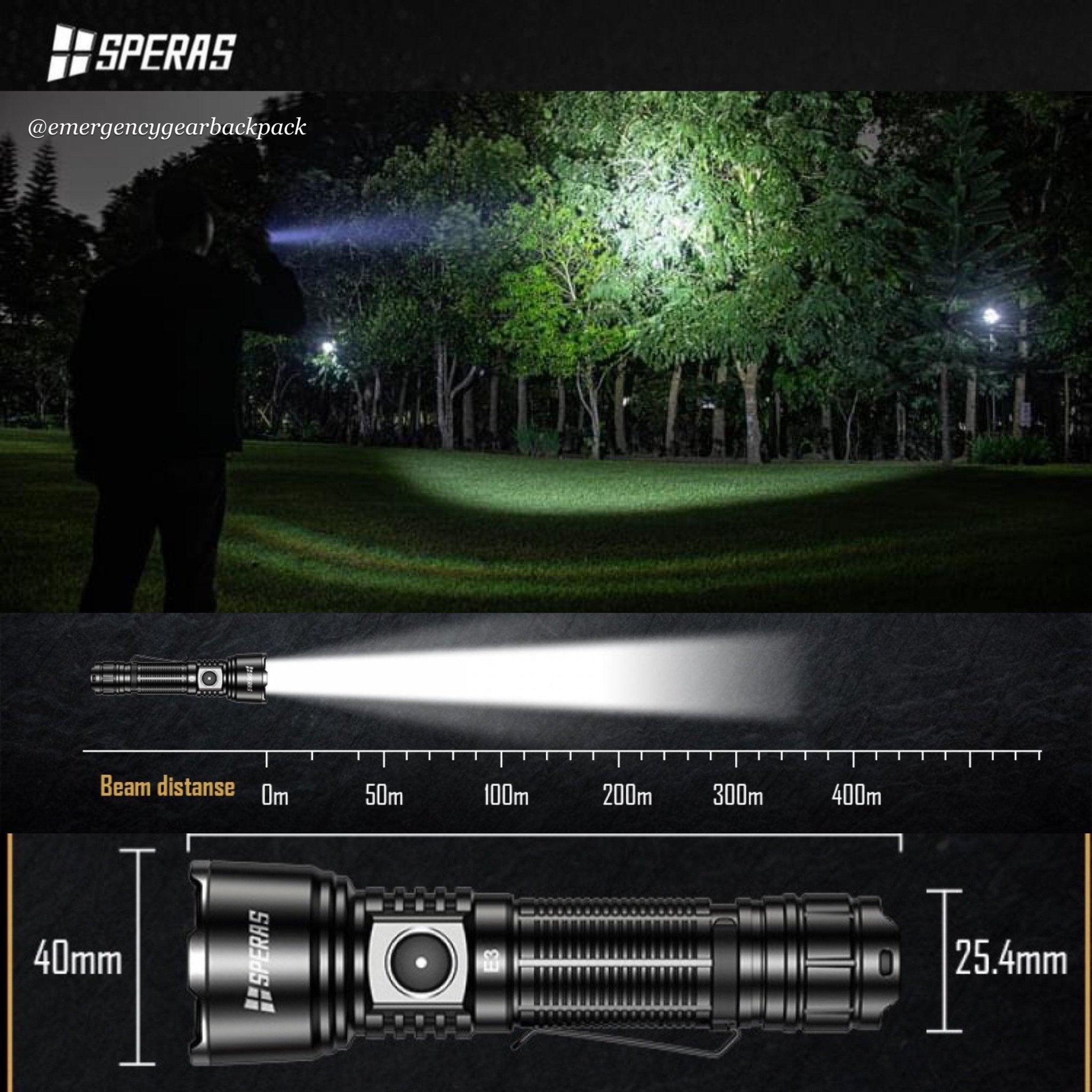 ไฟฉายขนาดคอมแพ็คประสิทธิภาพสูงจาก SPERAS ออกแบบให้ใช้งานได้ยาวนาน ความร้อนต่ำ ให้ลำแสงสว่างพุ่งแรงถึง 350 เมตร ด้วยหลอด OSRAM P9 1300 ลูเมน 6500 เคลวิน พร้อมโคมสะท้อนแสงอลูมิเนียมผิวเรียบและลึก ให้ Spill กว้าง Hotspot ดวงใหญ่ เหมาะสำหรับการใช้งานภาคสนาม ภารกิจยุทธวิธี หรือกิจกรรม Outdoor ทุกประเภท