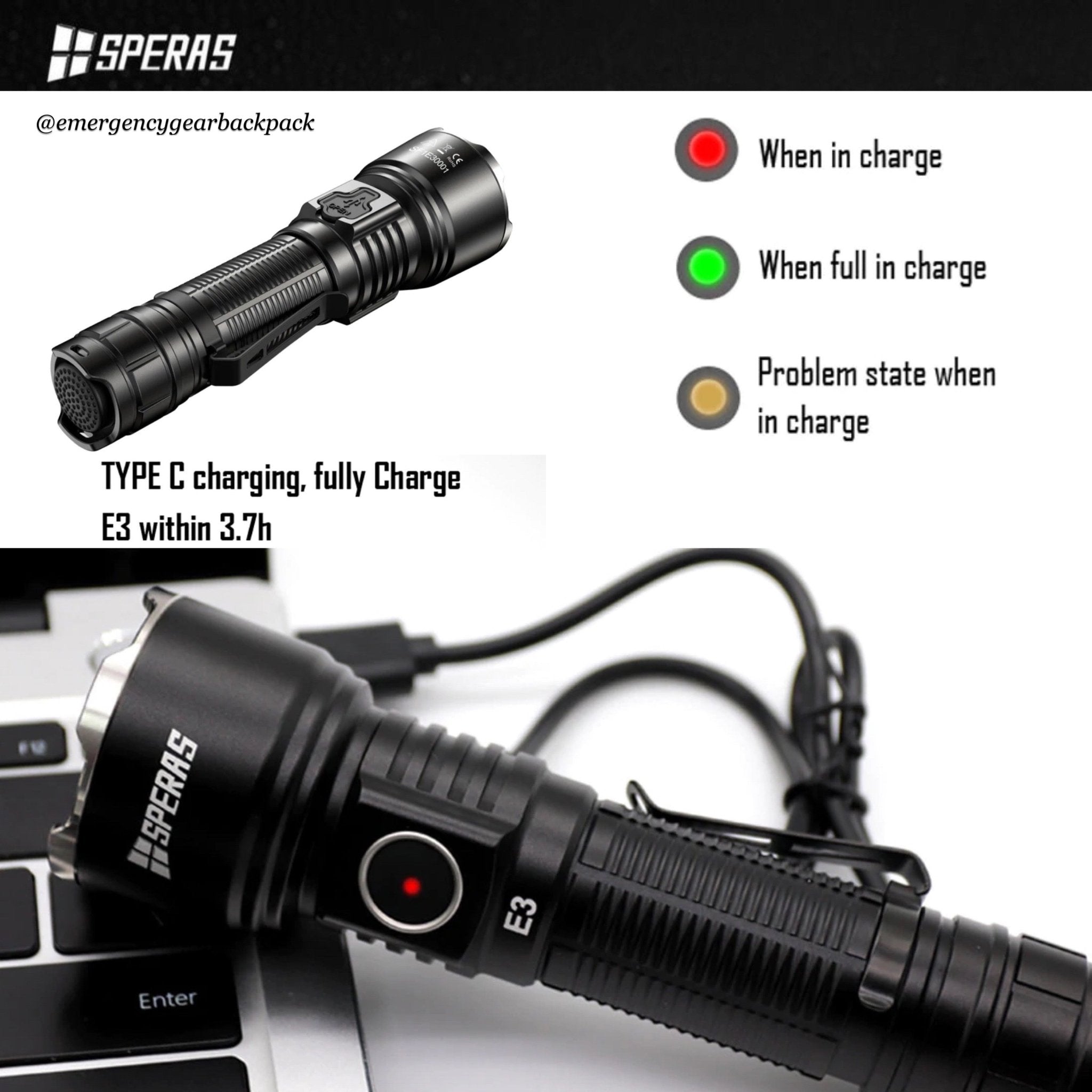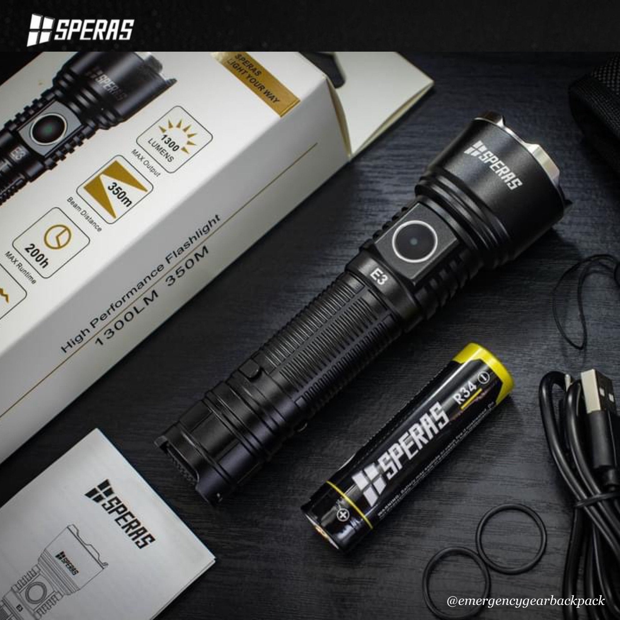 มาพร้อมแบตเตอรี่ SPERAS S34 18650 3400 mAh ชาร์จในตัวผ่าน USB Type-C ใช้งานต่อเนื่องสูงสุด 200 ชั่วโมง ในโหมด Eco