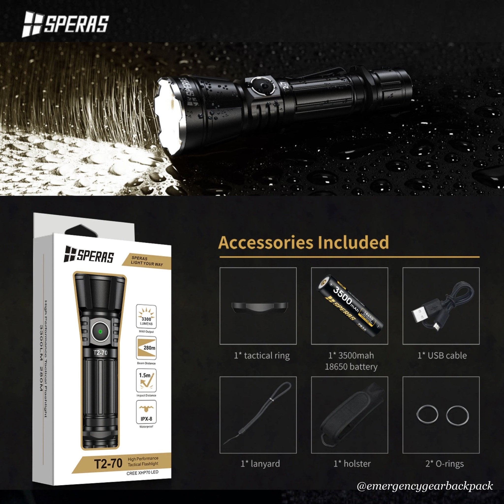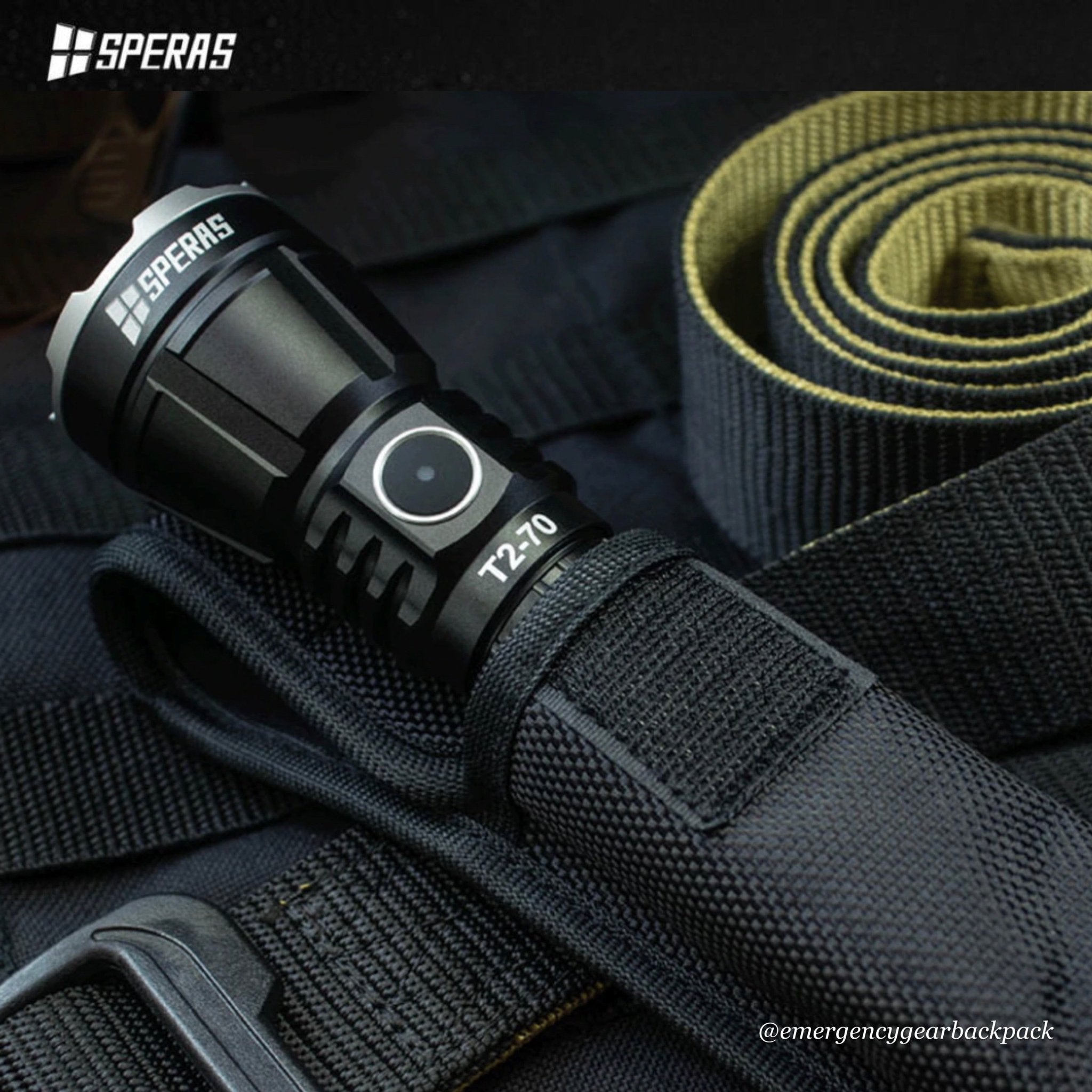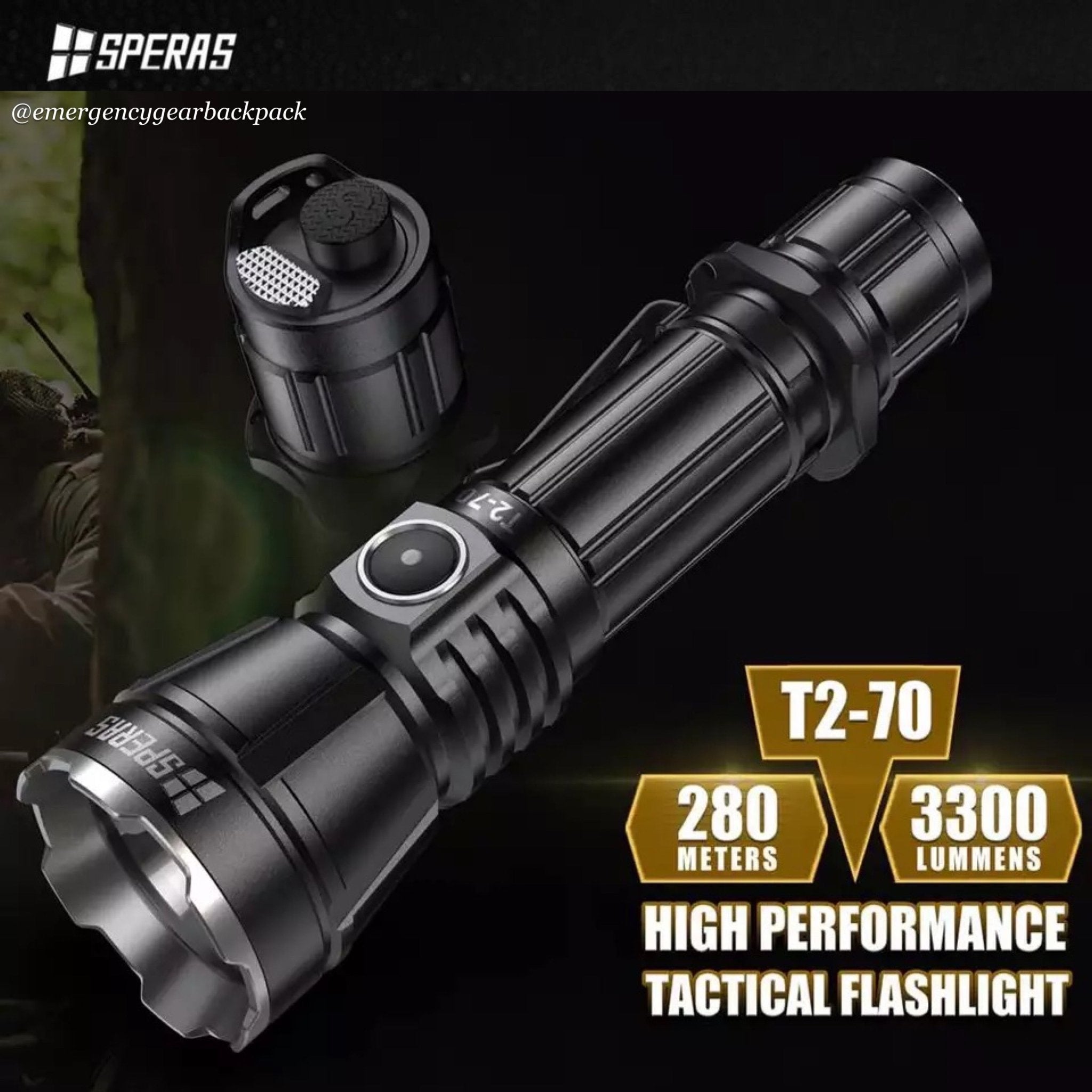 SPERAS T2-70 ไฟฉายแทคติคอลให้พลังแสงที่สว่างมากด้วยหลอด LED CREE XHP 70 3300LMS ลำแสงเข้มแสงพุ่งกว้าง ครอบคลุมพื้นที่ไกลสุด 280 เมตร