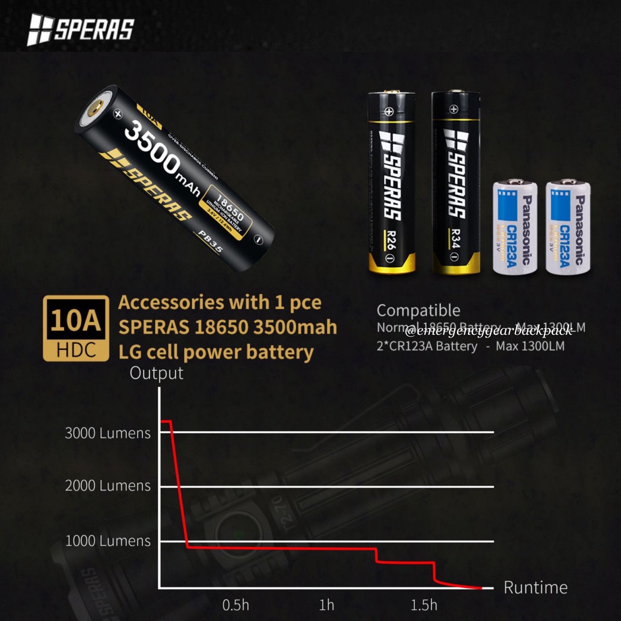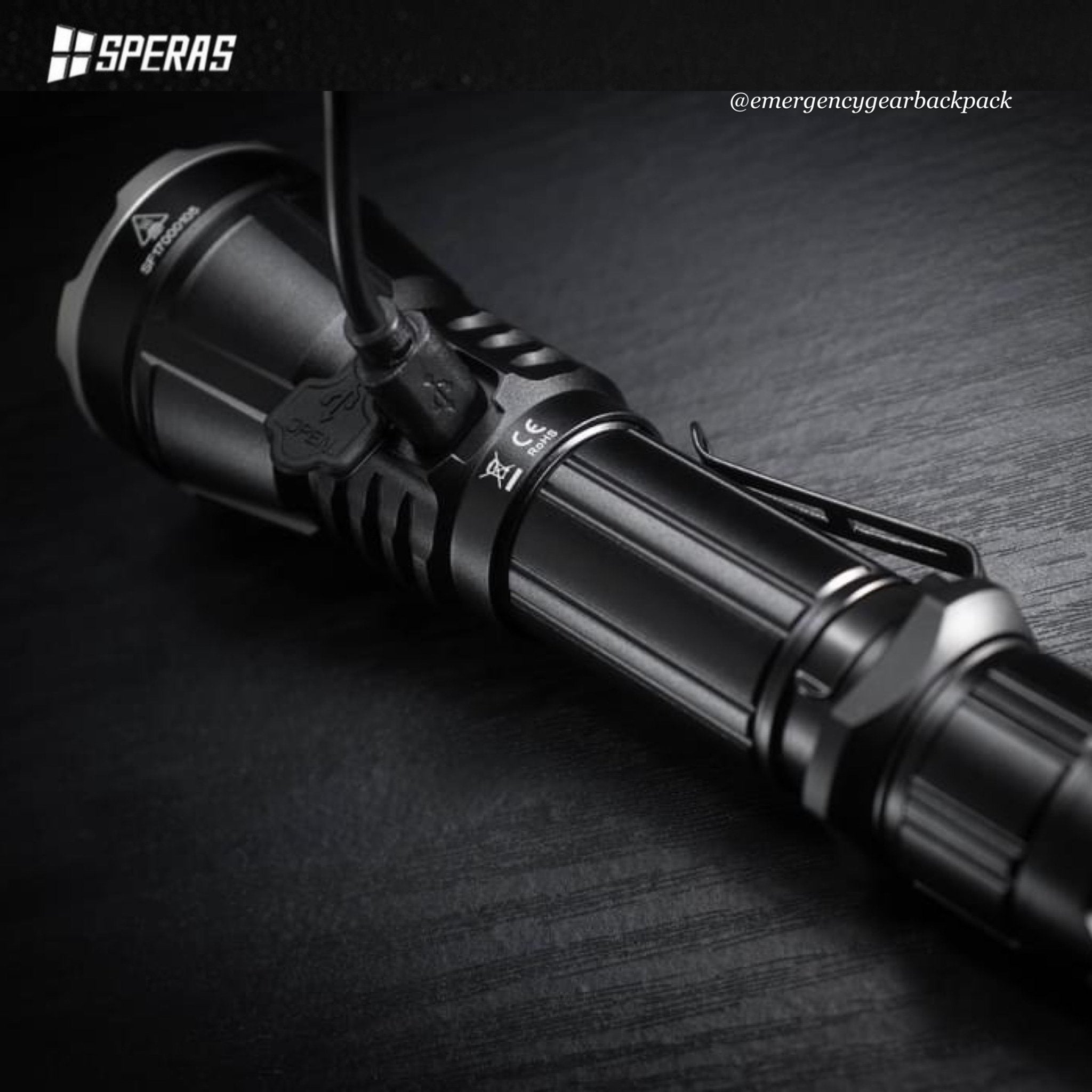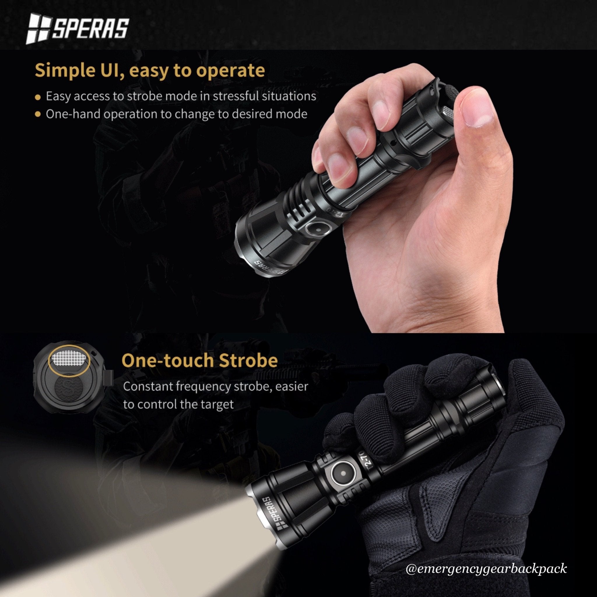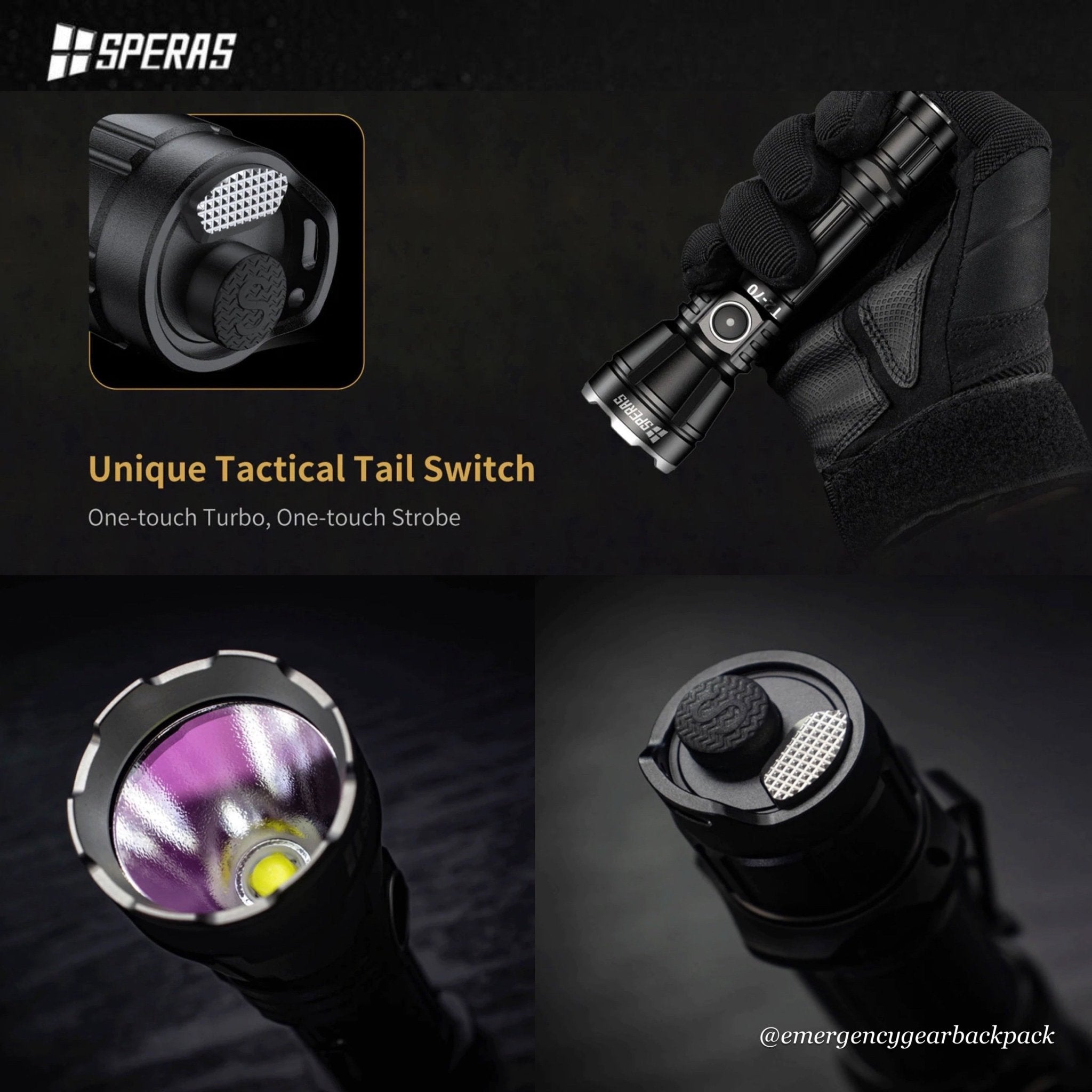SPERAS T2-70 ไฟฉายแทคติคอลให้พลังแสงที่สว่างมากด้วยหลอด LED CREE XHP 70 3300LMS ลำแสงเข้มแสงพุ่งกว้าง ครอบคลุมพื้นที่ไกลสุด 280 เมตร