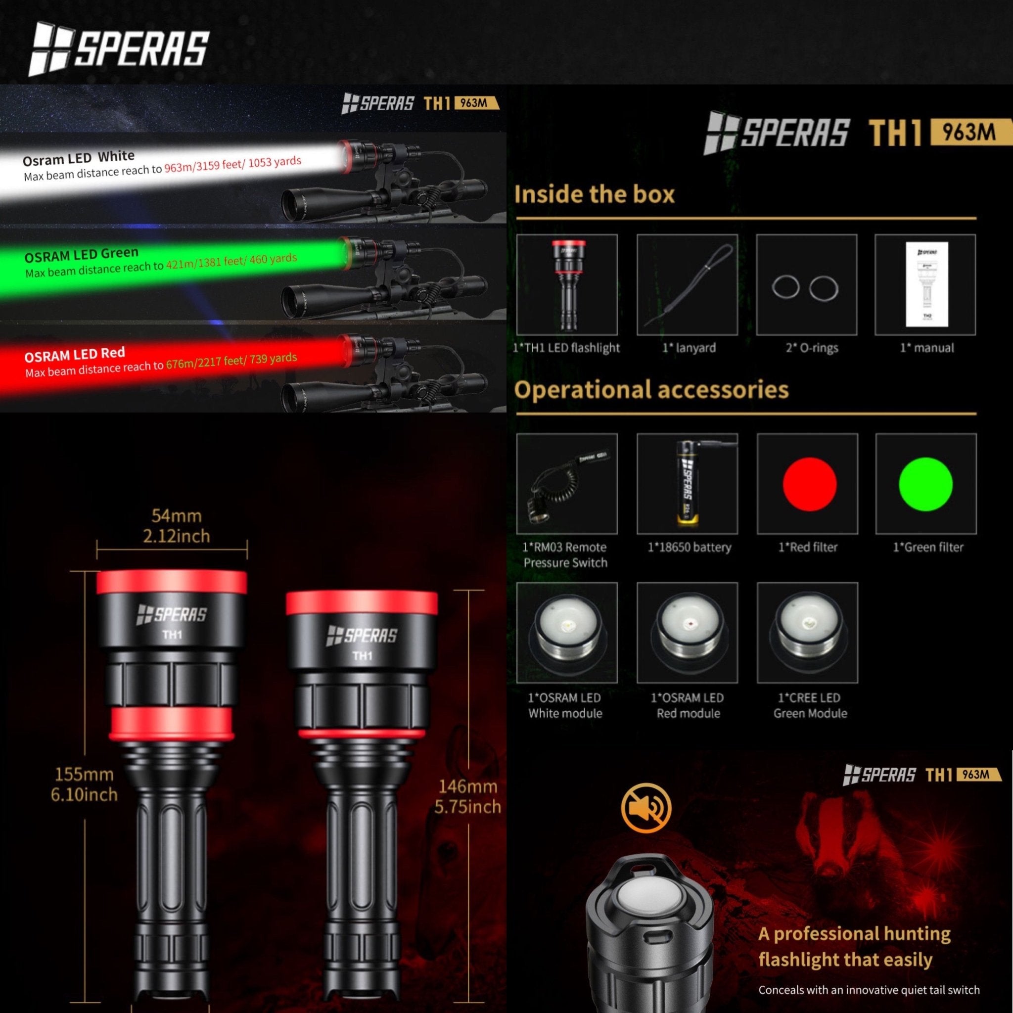 SPERAS TH1K คือไฟฉายแทคติคอลระดับมืออาชีพที่ผสานความอเนกประสงค์และพลังส่องสว่างไว้ในชุดเดียว มาพร้อม ชุดอุปกรณ์ครบเซ็ตในเคสพกพา ออกแบบให้ผู้ใช้สามารถสลับการใช้งานระหว่าง Flood Beam (กระจายแสงกว้าง) และ Spot Beam (ซูมรวมแสงพุ่งไกล) ได้อย่างรวดเร็ว