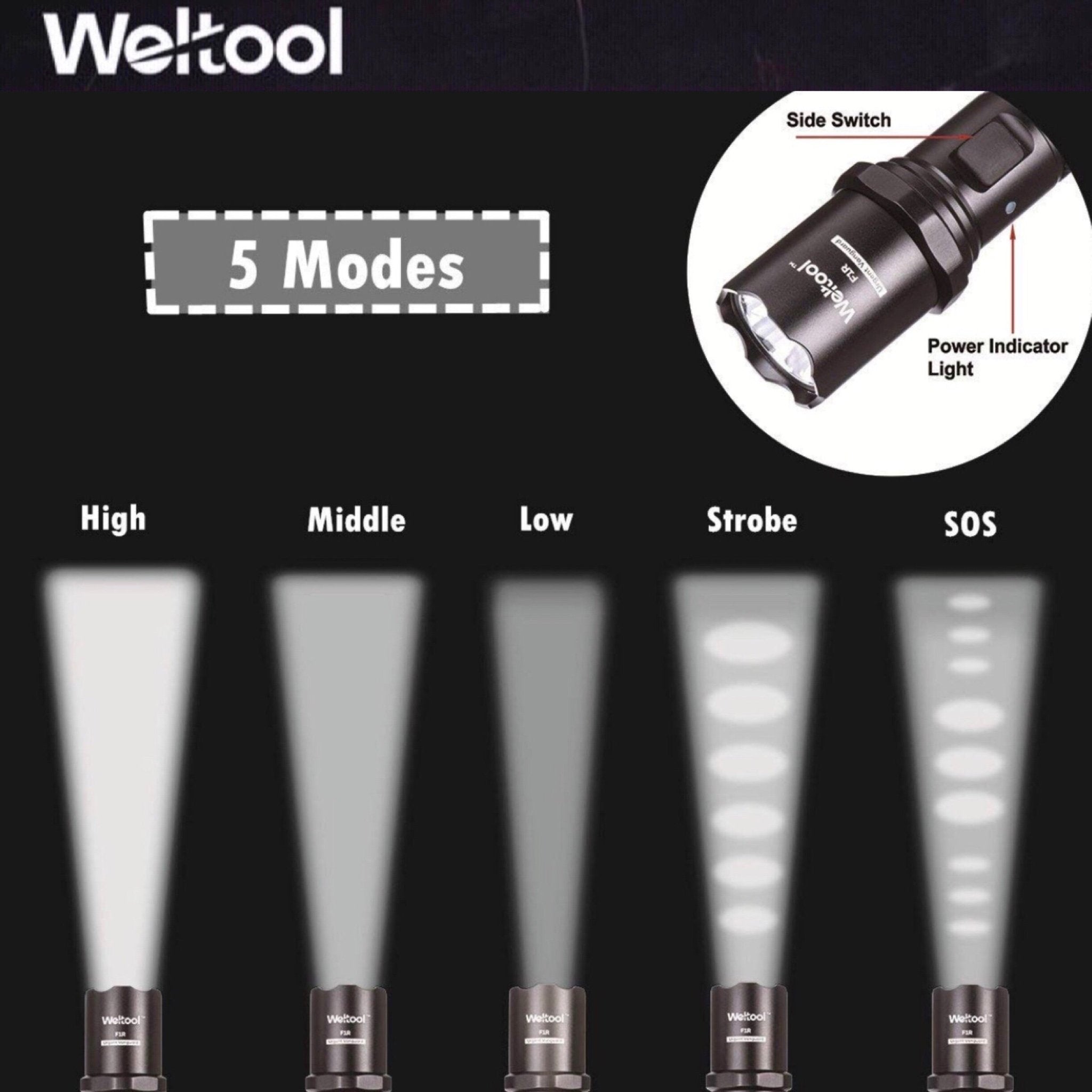 Weltool F1R ถูกออกแบบมาให้ใช้งานง่ายและพร้อมสำหรับทุกสถานการณ์ ด้วยสวิตช์ด้านข้างแบบซิลิโคน คุณสามารถเลือกโหมดการใช้งานได้หลากหลาย: