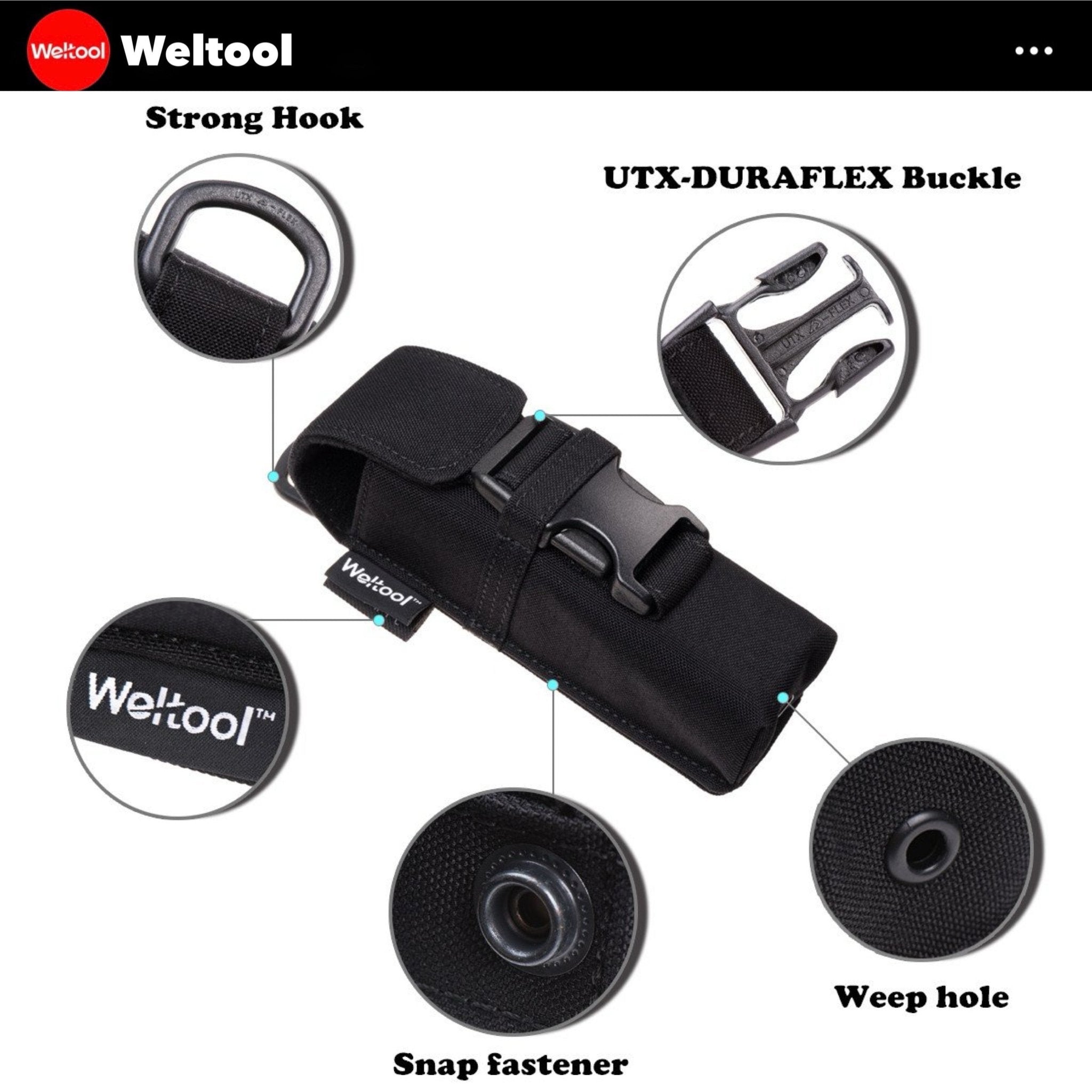 Weltool FH5 V2.0 มีช่องโปร่งแสงด้านล่าง พร้อมหัวล็อค Duraflex คุณภาพสูง มีสายรัด MOLLE และห่วงร้อยเข็มขัด ใช้สำหรับพกคาดเอว ใช้ติดเป็นกระเป๋าลูกเป้ได้ ใช้งานได้ทนทานยาวนานในทุกสภาพอากาศ เหมาะกับเจ้าหน้าที่ภาคสนาม เจ้าหน้าที่กู้ภัย เจ้าหน้าที่ความปลอดภัย และผู้ใช้ที่ต้องการซองพกคุณภาพระดับมืออาชีพ