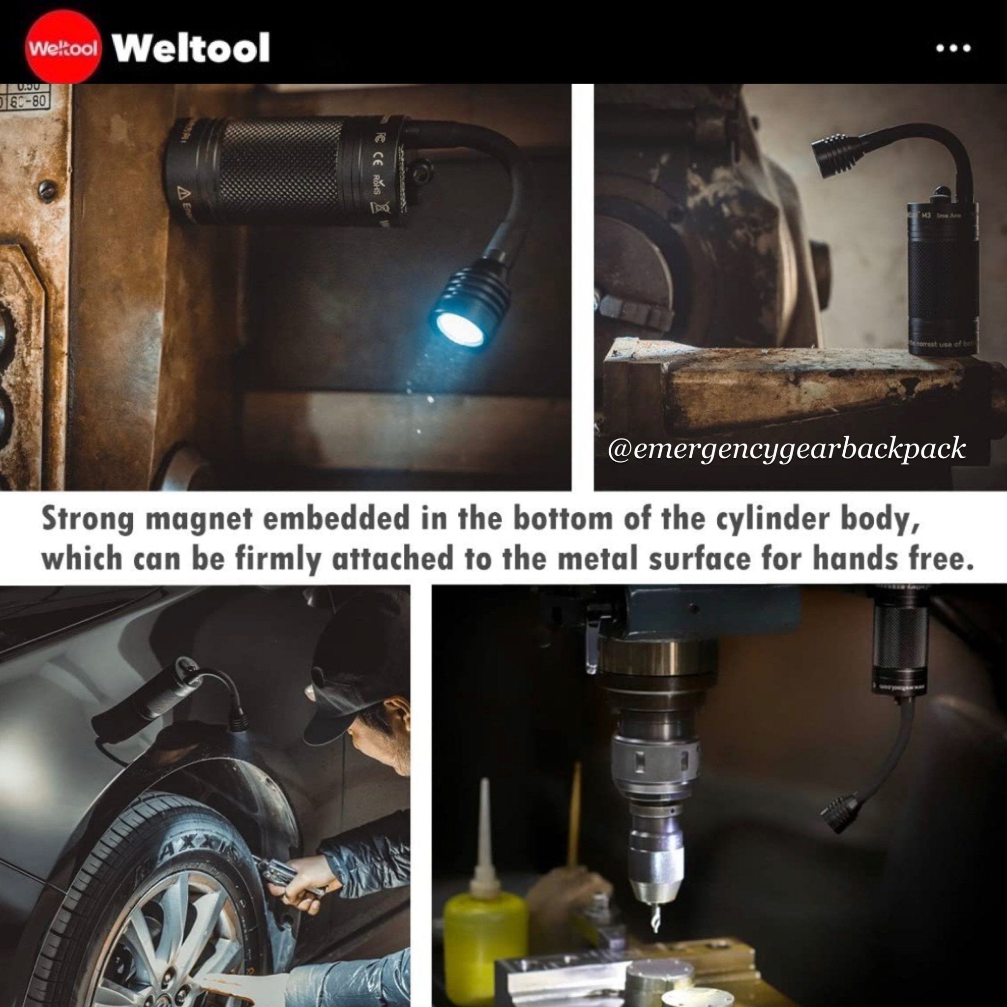- คอไฟฉายมีเส้นผ่าศูนย์กลาง 1.27cm หมุนได้ 360 องศา (Silicone-wrapped metal gooseneck) ความยาวรวมส่วนหัว และคอไฟฉาย 138mm (5.43”) ±5mm (0.20”)
