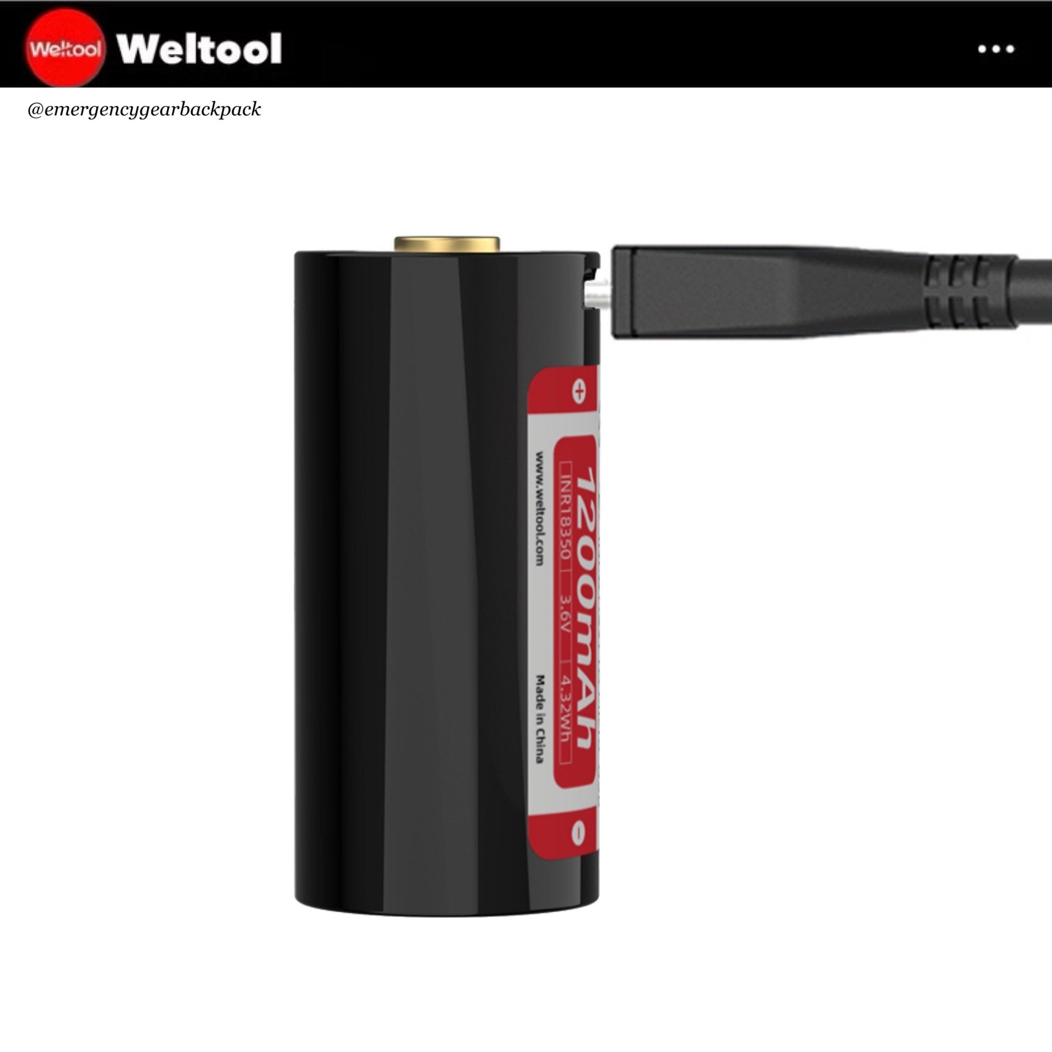 Weltool UB18-12P แบตเตอรี่ INR18350 ความจุ 1200mAh พร้อมพอร์ตชาร์จ Micro USB ในตัว มีไฟสถานะแสดงการชาร์จ จ่ายกระแสสูงสุด 8A เหมาะสำหรับไฟฉายแรงสูง และอุปกรณ์ที่ต้องการกระแสสูงต่อเนื่อง