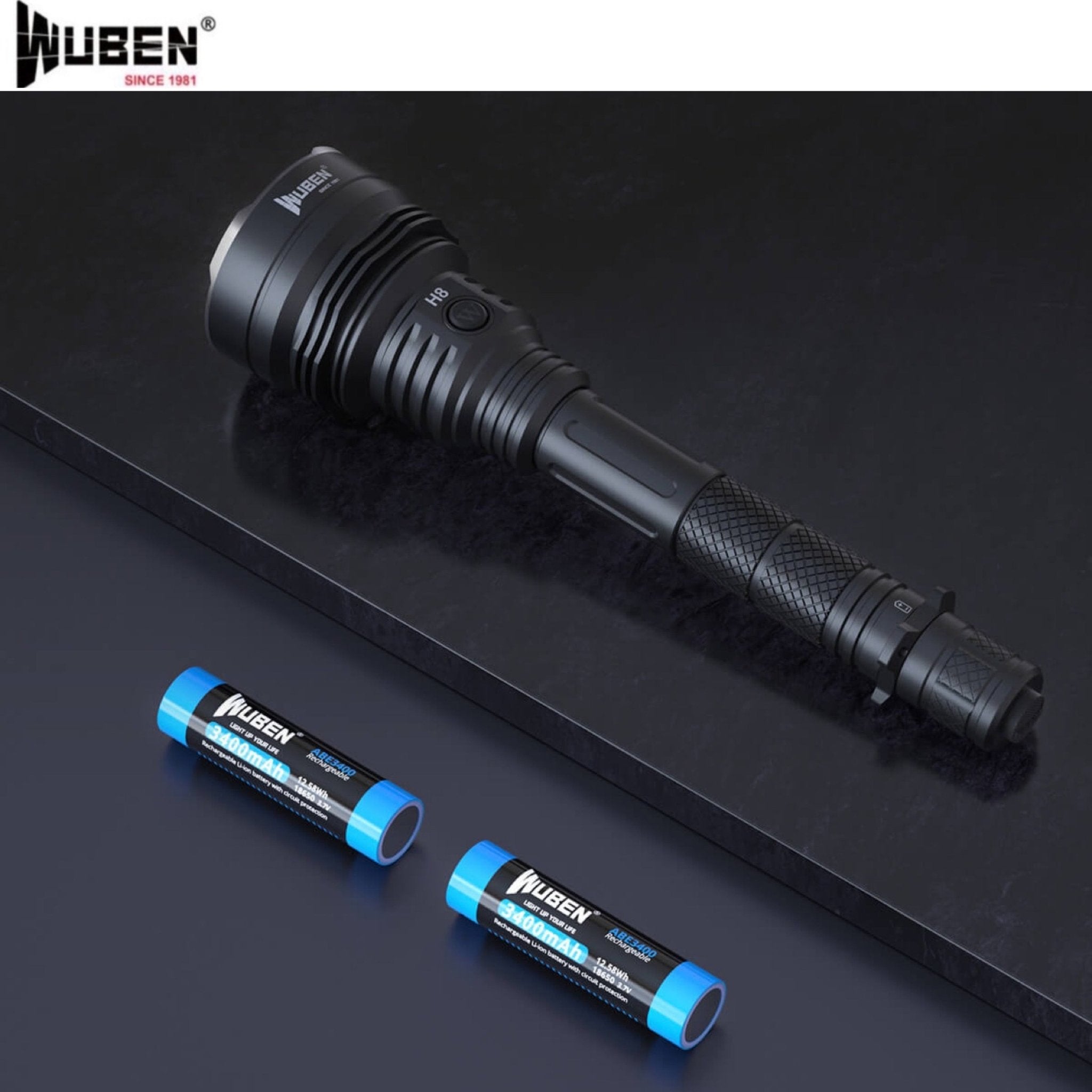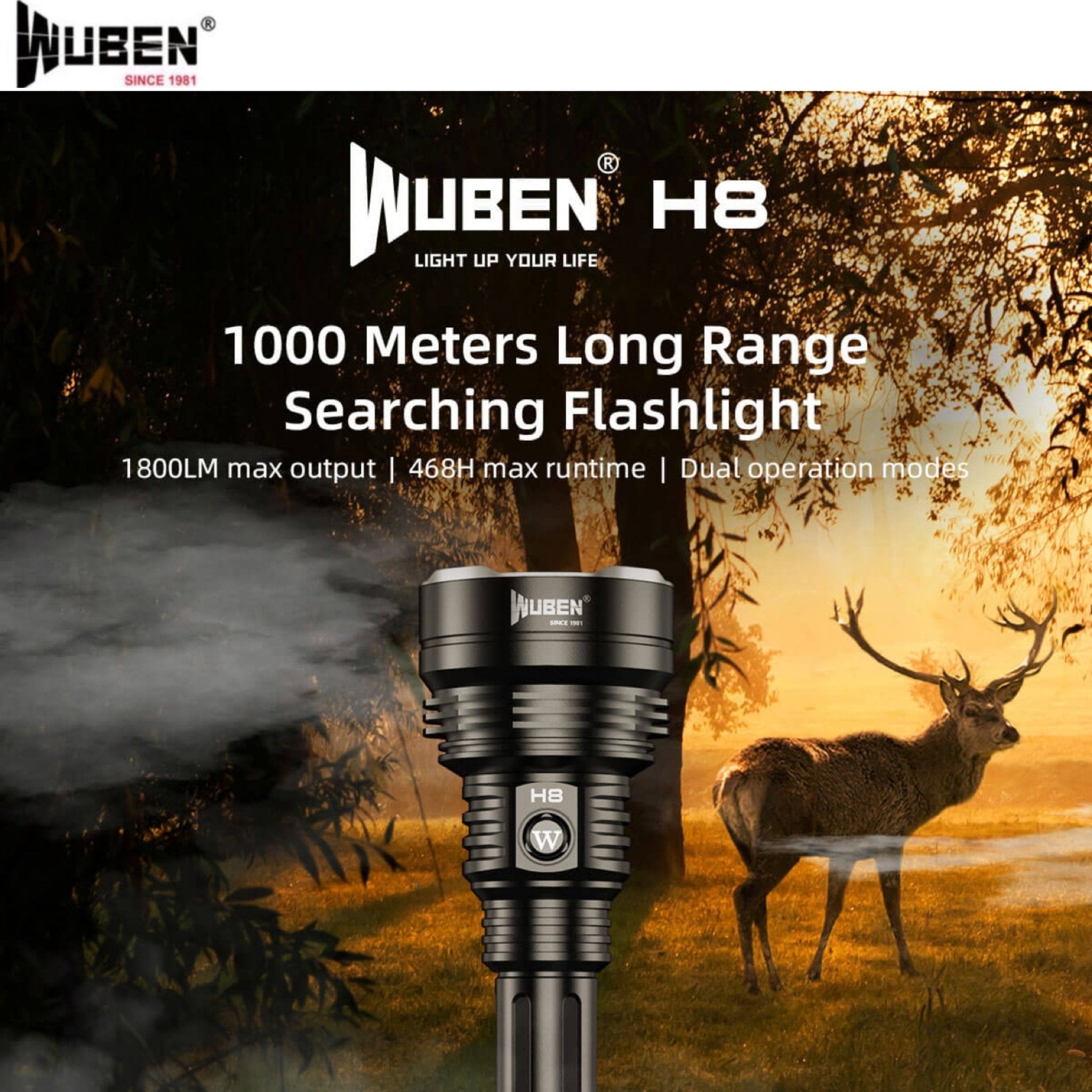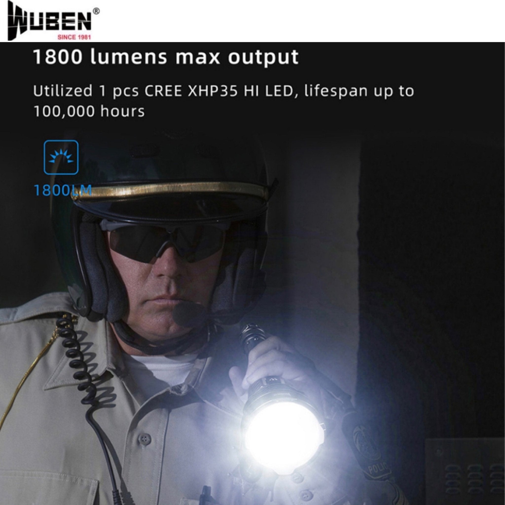 WUBEN H8 Deluxe Set ไฟฉายแทคติคอล พร้อมอุปกรณ์เสริมการทำงานครบชุด คุณสมบัติเพียบพร้อมสำหรับการใช้งานนอกสถานที่ ใช้หลอด LED CREE® XHP35 High Intensity อุณหภูมิสี 4000K (Cool White) ค่าความสว่างสูงสุด 1800LMS 250.000CD สปิลแสงวงกว้าง ลำแสงเข้มพุ่งไกล 1,000 เมตร