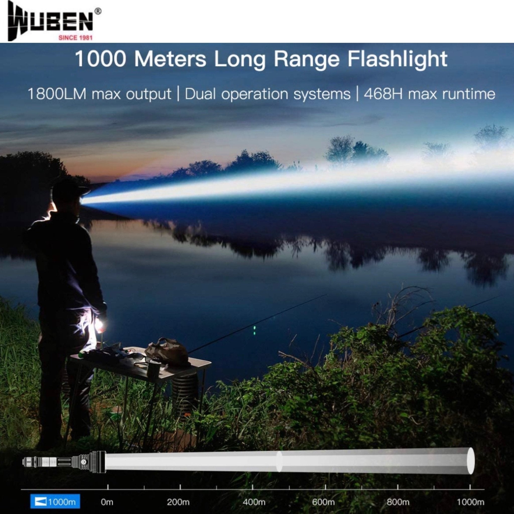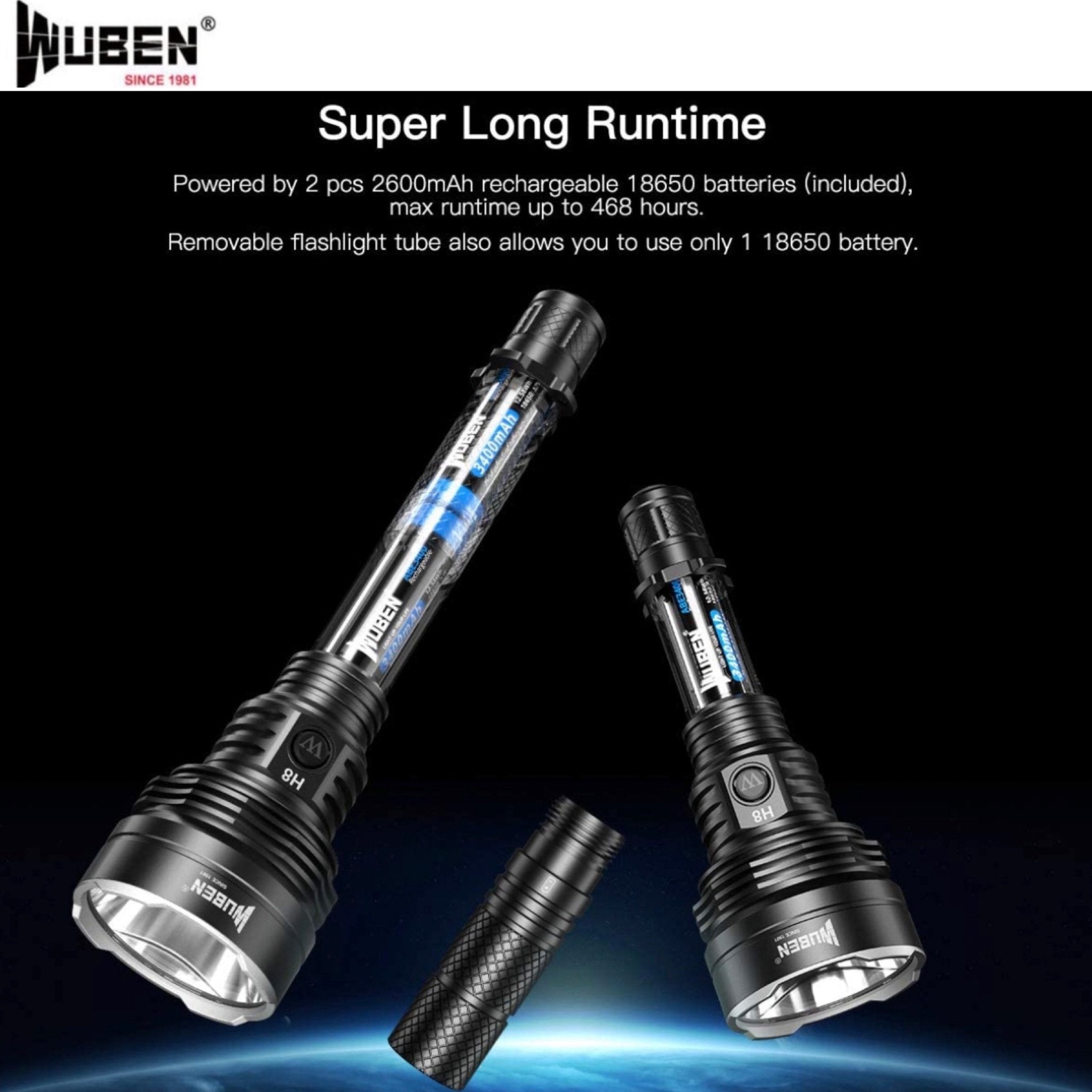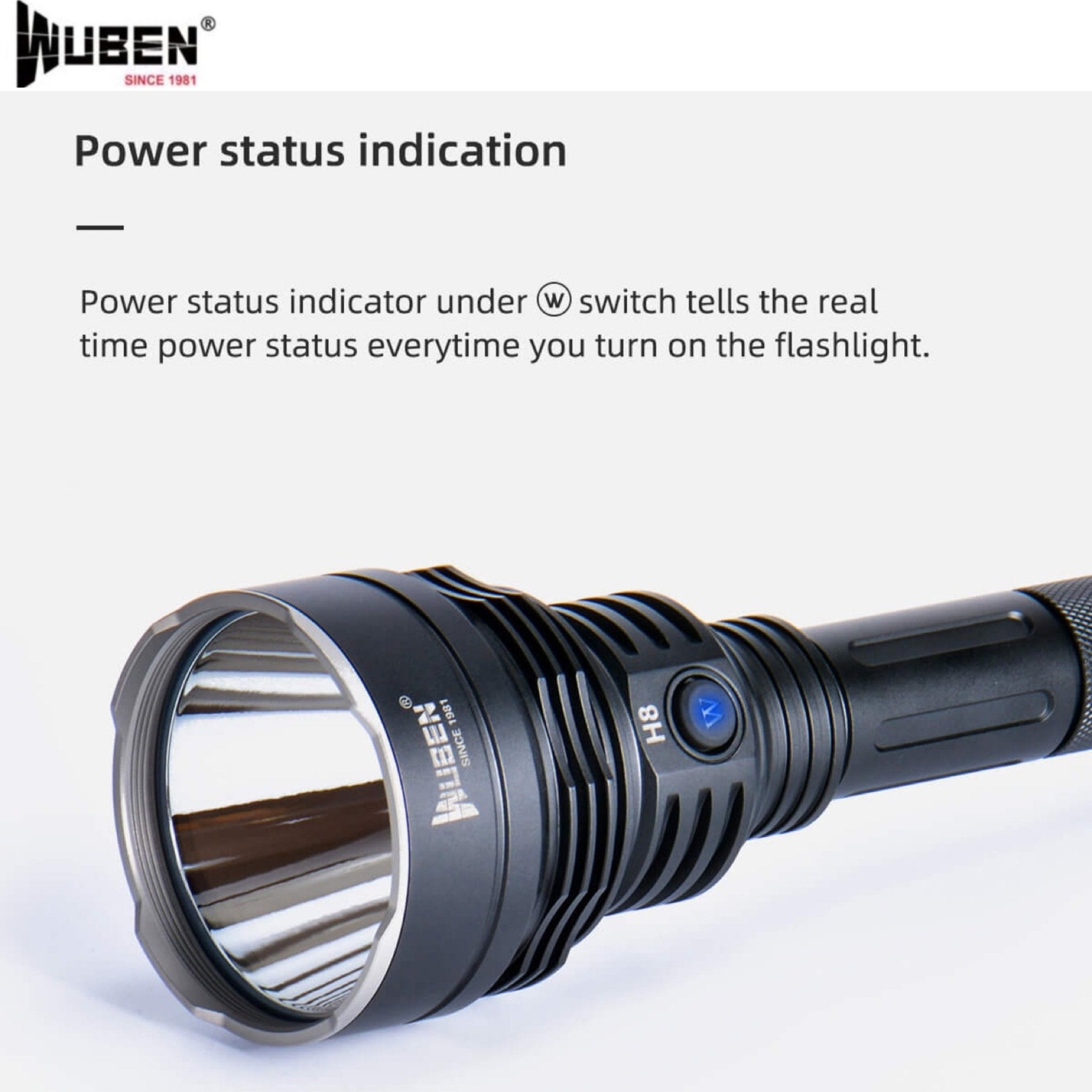 WUBEN H8 Deluxe Set ไฟฉายแทคติคอล พร้อมอุปกรณ์เสริมการทำงานครบชุด คุณสมบัติเพียบพร้อมสำหรับการใช้งานนอกสถานที่ ใช้หลอด LED CREE® XHP35 High Intensity อุณหภูมิสี 4000K (Cool White) ค่าความสว่างสูงสุด 1800LMS 250.000CD สปิลแสงวงกว้าง ลำแสงเข้มพุ่งไกล 1,000 เมตร