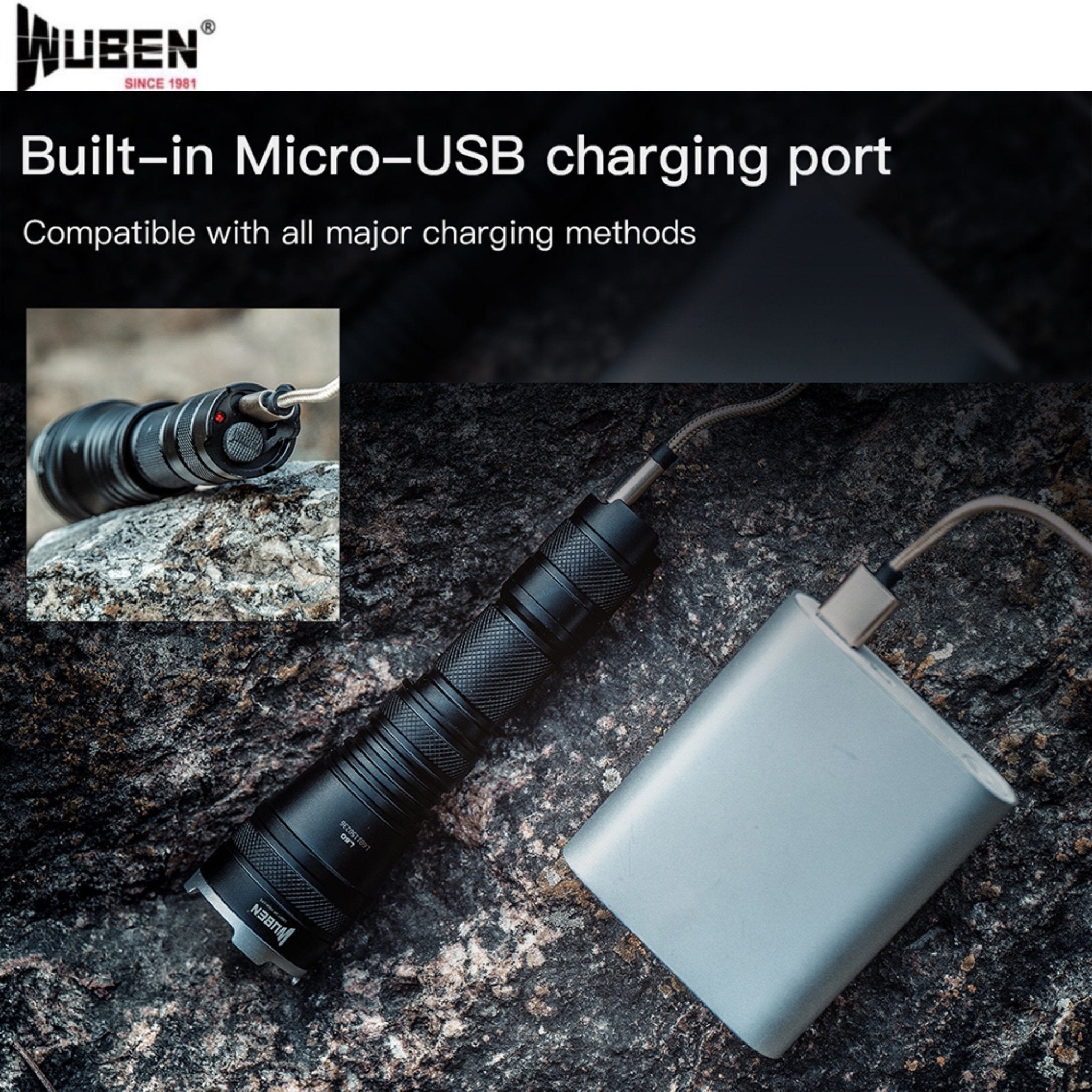 Waterproof USB charging port: พอร์ต Micro USB แบบกันน้ำที่สวิตช์ท้าย ชาร์จกระแสไฟที่ 1A พร้อมไฟ LED indicator แสดงสถานะการชาร์จ