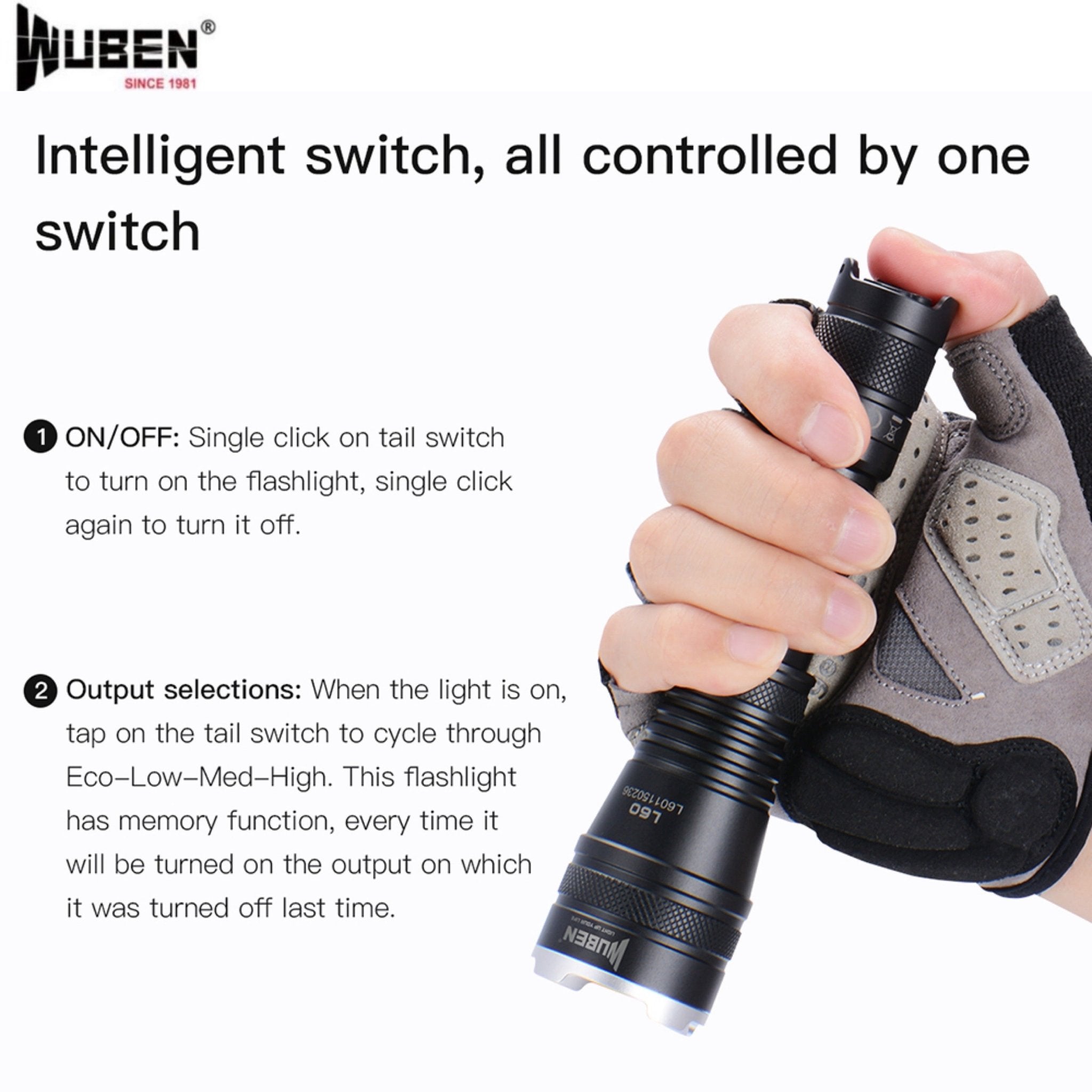 Momentary On: มีฟังก์ชันจำโหมดแสงล่าสุด ไฟฉายจะเริ่มทำงานที่ระดับแสงสุดท้ายที่ใช้