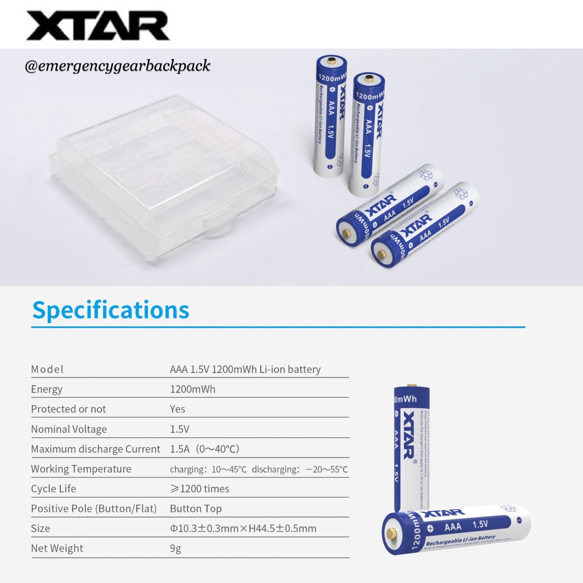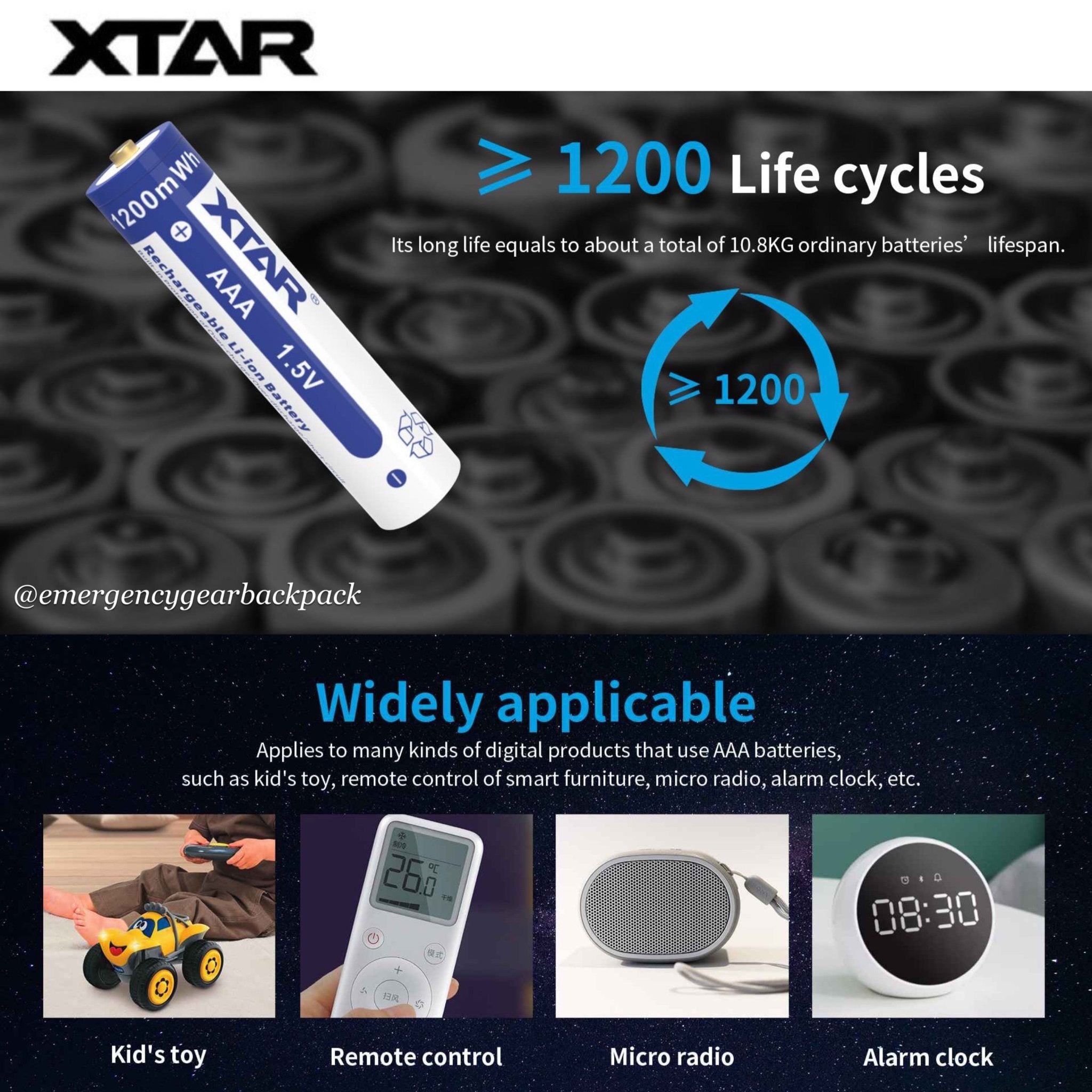 XTAR 1.5V Li-ion Battery AAA 1200mWh ขั้วบวกหัวนูนมาตรฐาน มีวงจรควบคุมความปลอดภัยในการทำงาน แบตเตอรี่จ่ายกระแสด้วยแรงดันคงที่ 1.5V ตลอดการทำงาน ให้ประสิทธิภาพการทำงานเหนือกว่าถ่าน Alkaline 1.5V หรือ NI-MH 1.2V ในทุกด้าน ใช้ได้กับอุปกรณ์อิเล็กทรอนิกส์ที่ใช้งานในชีวิตประจำวัน