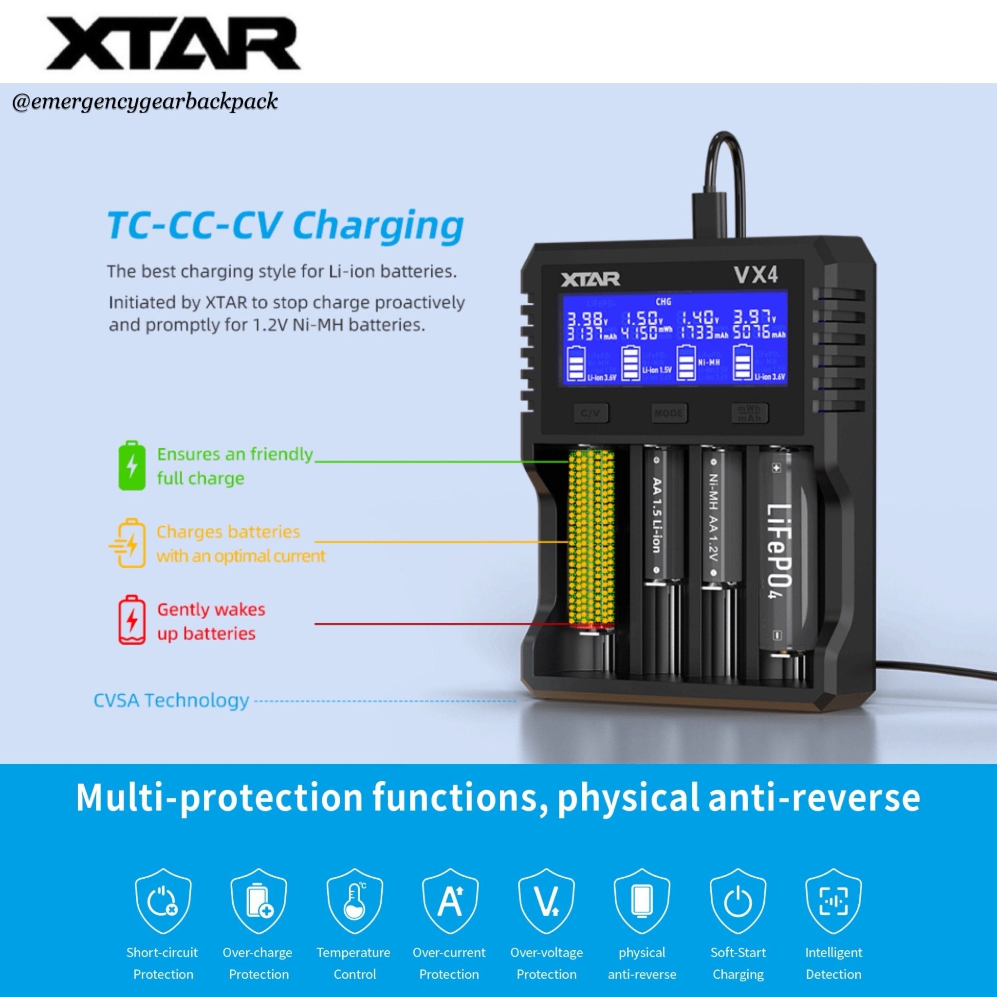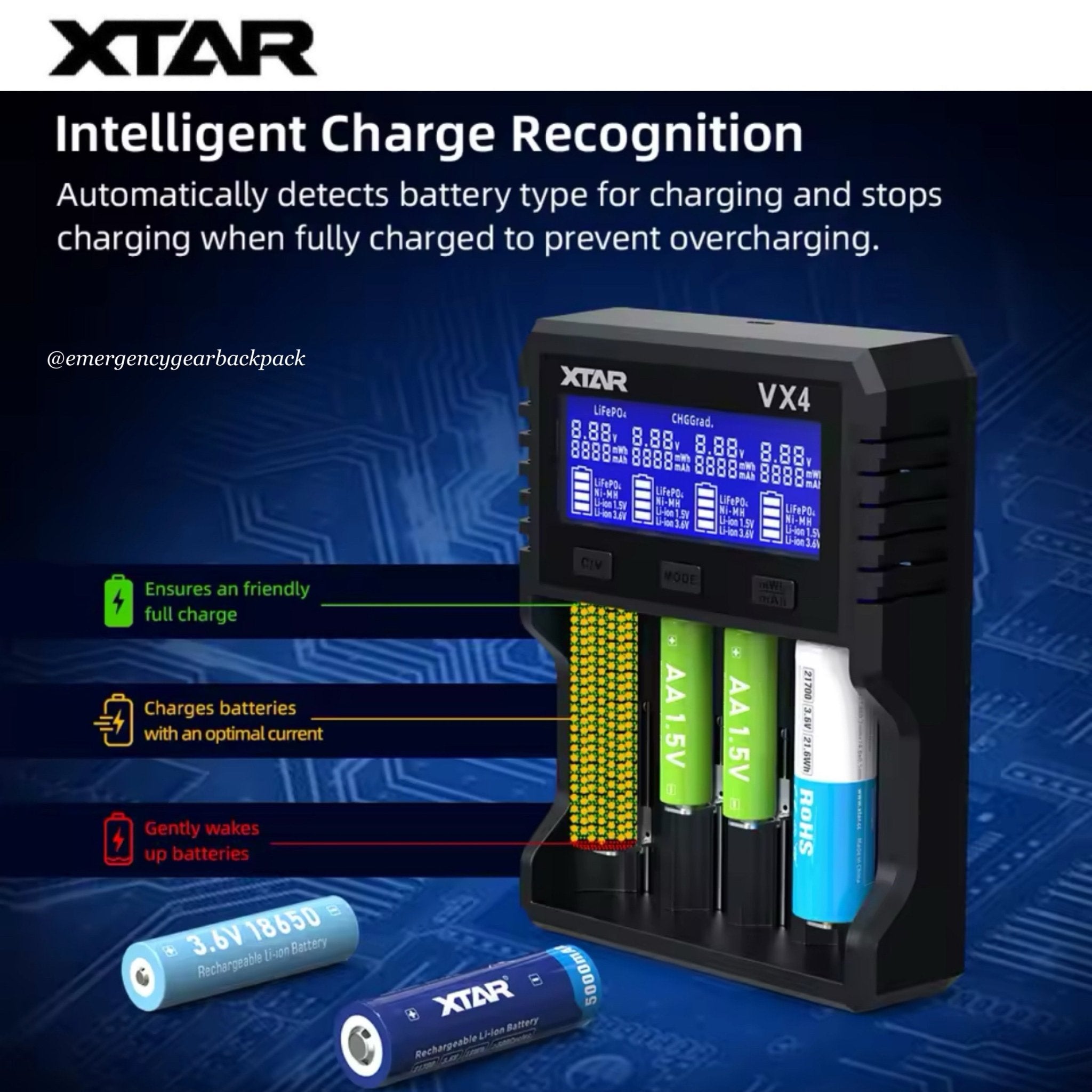 XTAR VX4 Visible Mixer เป็นเครื่องชาร์จ และตรวจสอบแบตเตอรี่อเนกประสงค์ที่มี 4 ช่องชาร์จอิสระ มาพร้อมฟังก์ชั่นการชาร์จและตรวจสอบความจุที่แท้จริงของแบตเตอรี่ Li-ion 1.5V, 3.6V/3.7V, NI-MH 1.2V และ LiFePO4 3.2V ด้วยความแม่นยำสูง