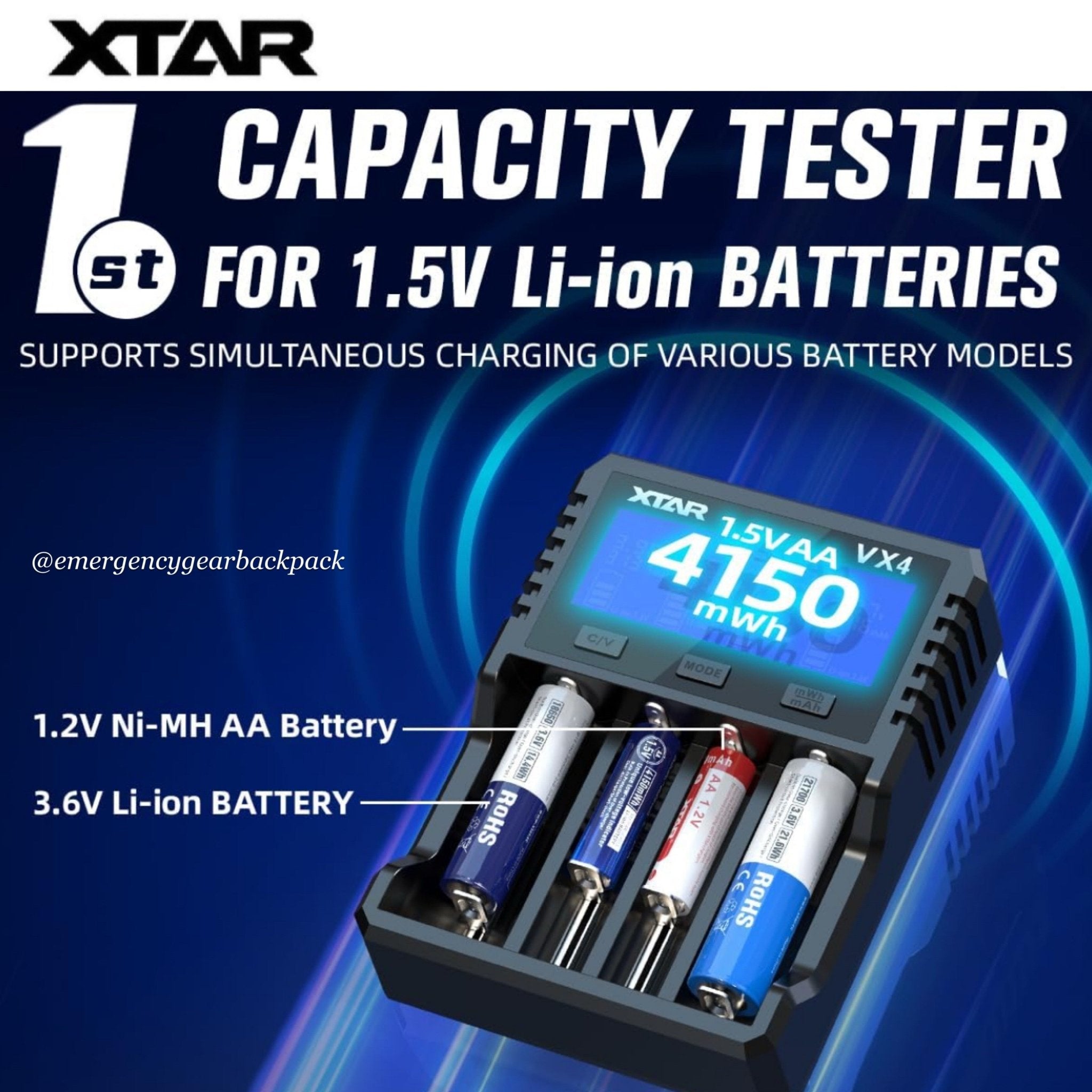 - VX4 เป็นเครื่องชาร์จรุ่นแรกในตลาดที่สามารถตรวจสอบความจุที่แท้จริงของแบตเตอรี่ Li-ion 1.5V และ LiFePO4 3.2V